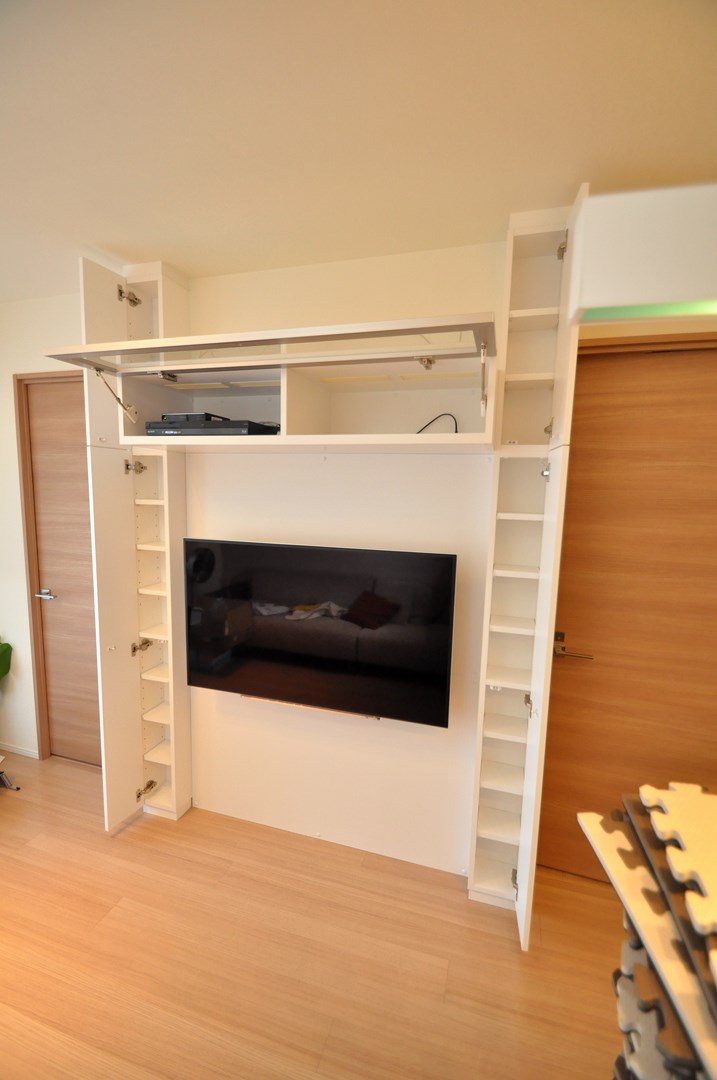 東京都の中央区にお住まいのN様より、壁掛TVボード製作(リビング壁面収納)をオーダー頂きました。