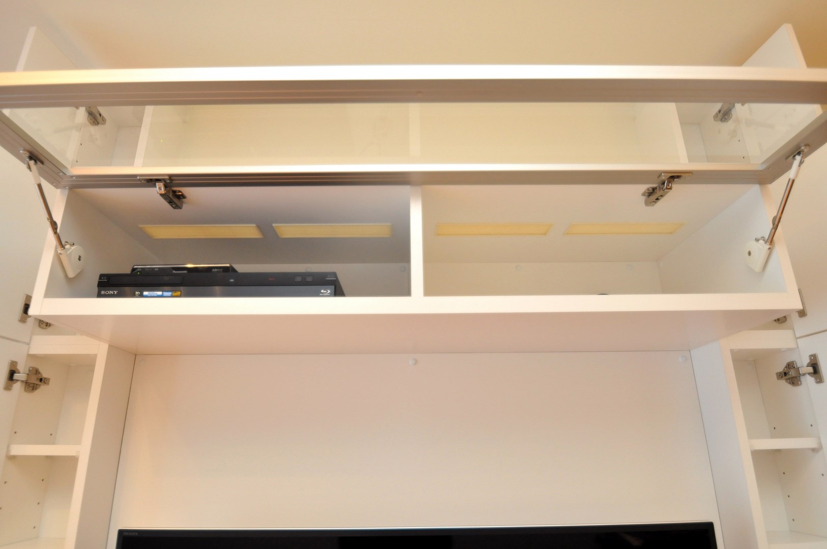 製作内容の特徴と致しましては、AV機器収納部分を上部に設定した意匠でしょうか。