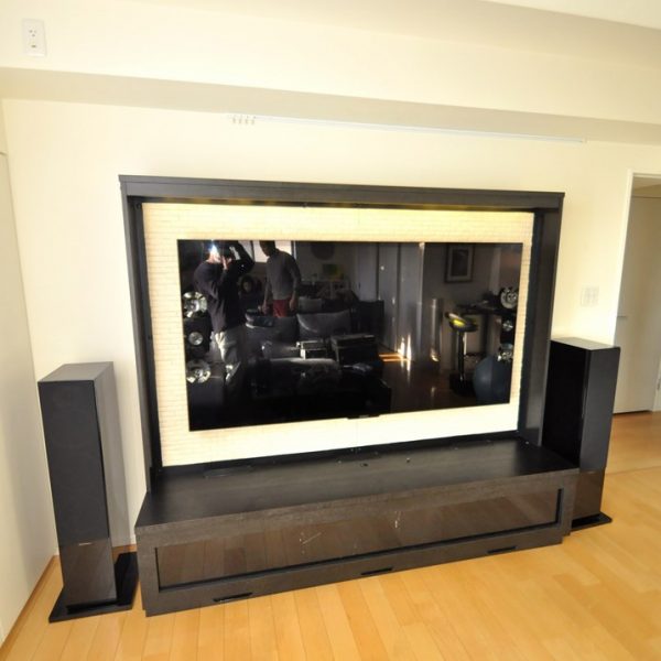 リビングルームにおけるTVボード製作 壁掛テレビ収納 オーダー家具 製作事例