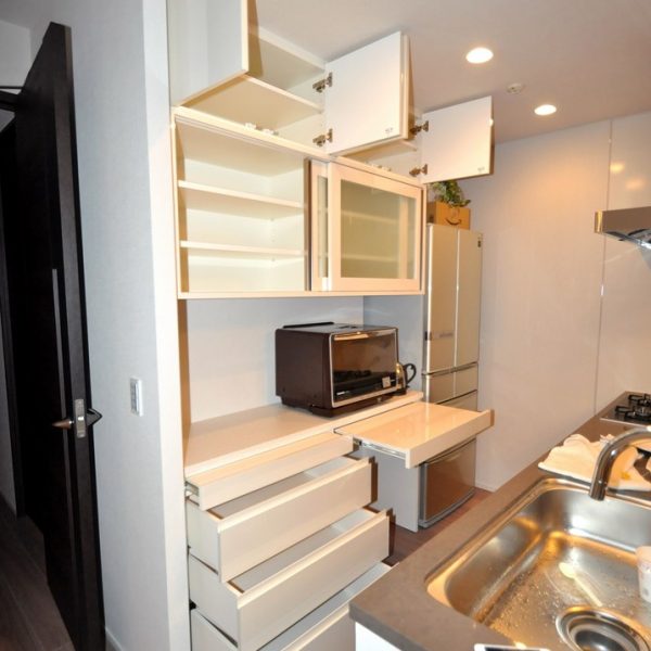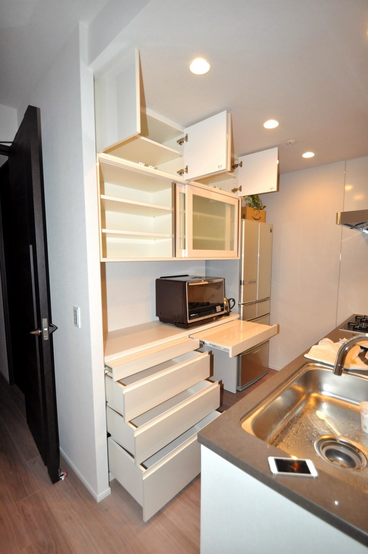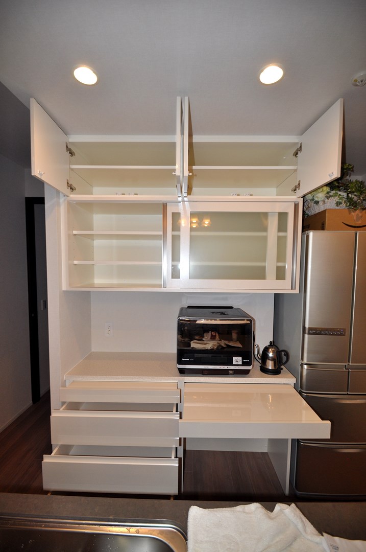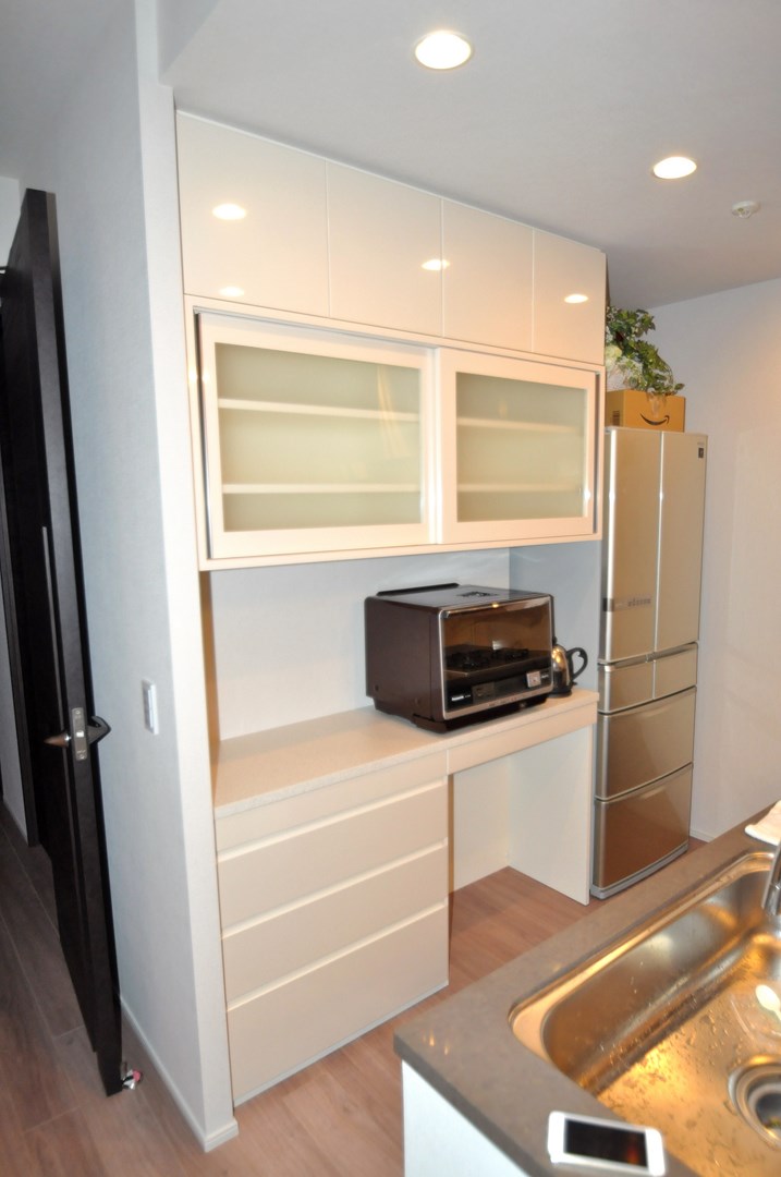 文京区にお住まいのY様よりカップボード製作(造作キッチン壁面収納)をオーダー頂きました。