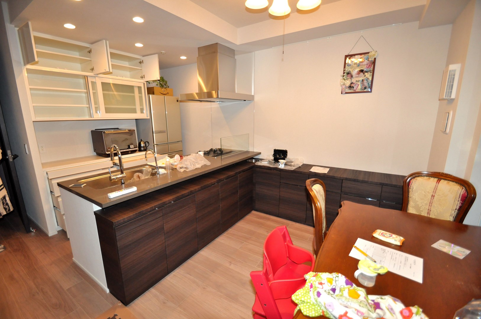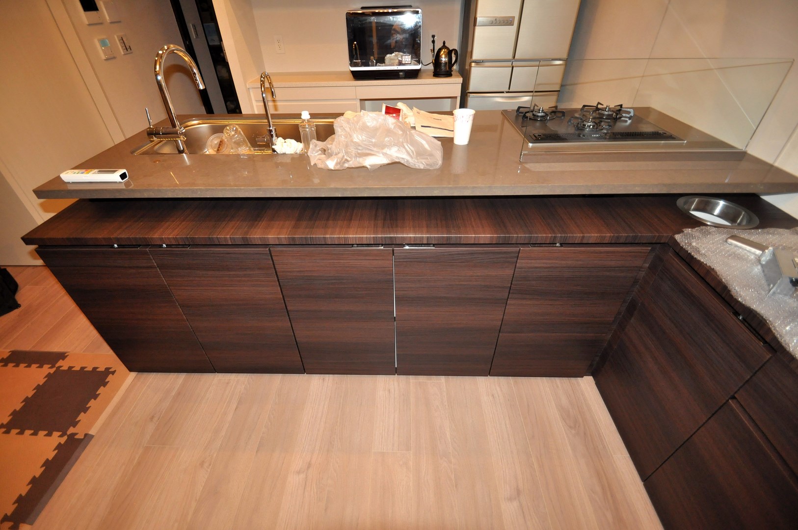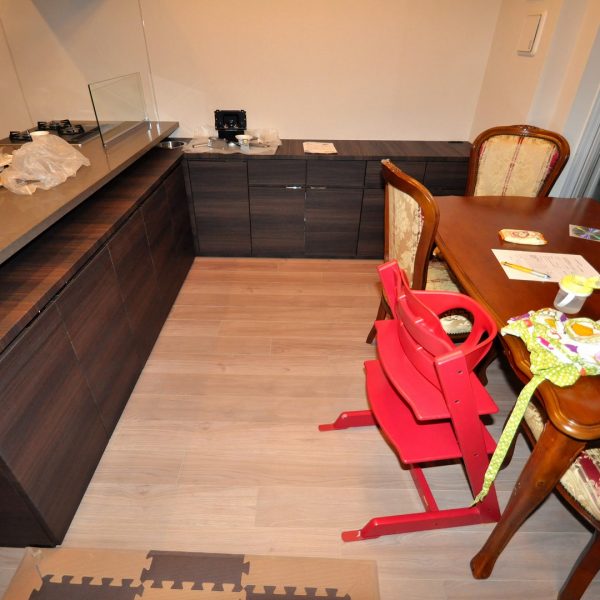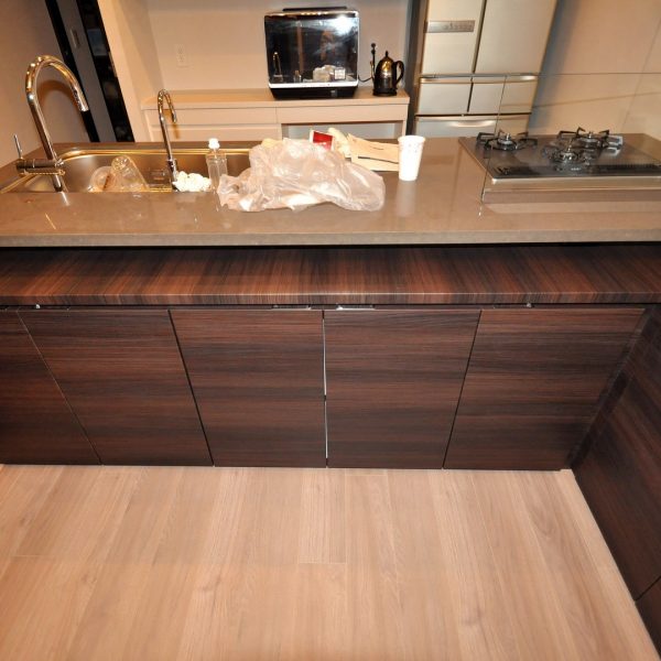 カウンター下部分とダイニングルーム壁面へL型に施工をさせていただきました。