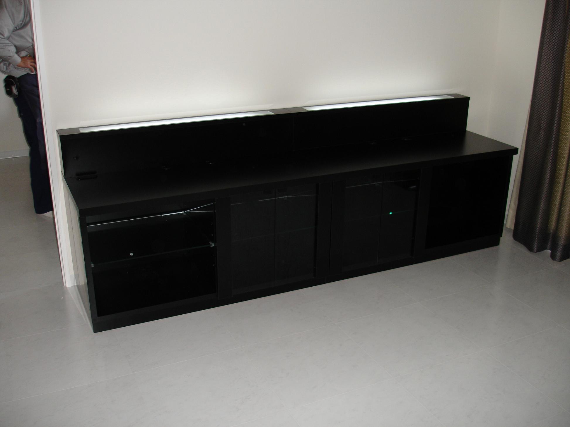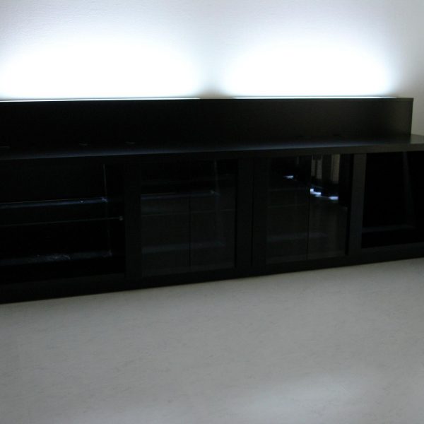 硝子扉や棚板にもスモーク硝子を採用することにより、正面は完全に黒。