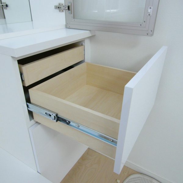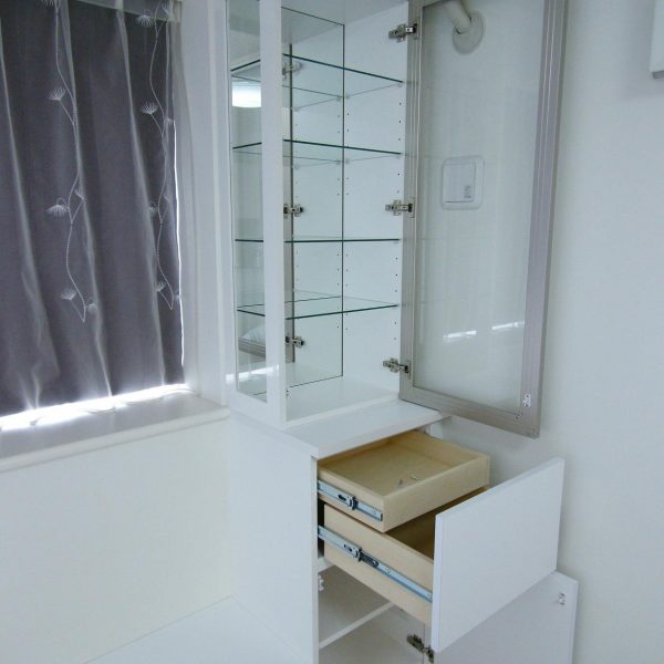 :M3鏡(背板に採用)・プッシュオープン式引き出し・AC新設