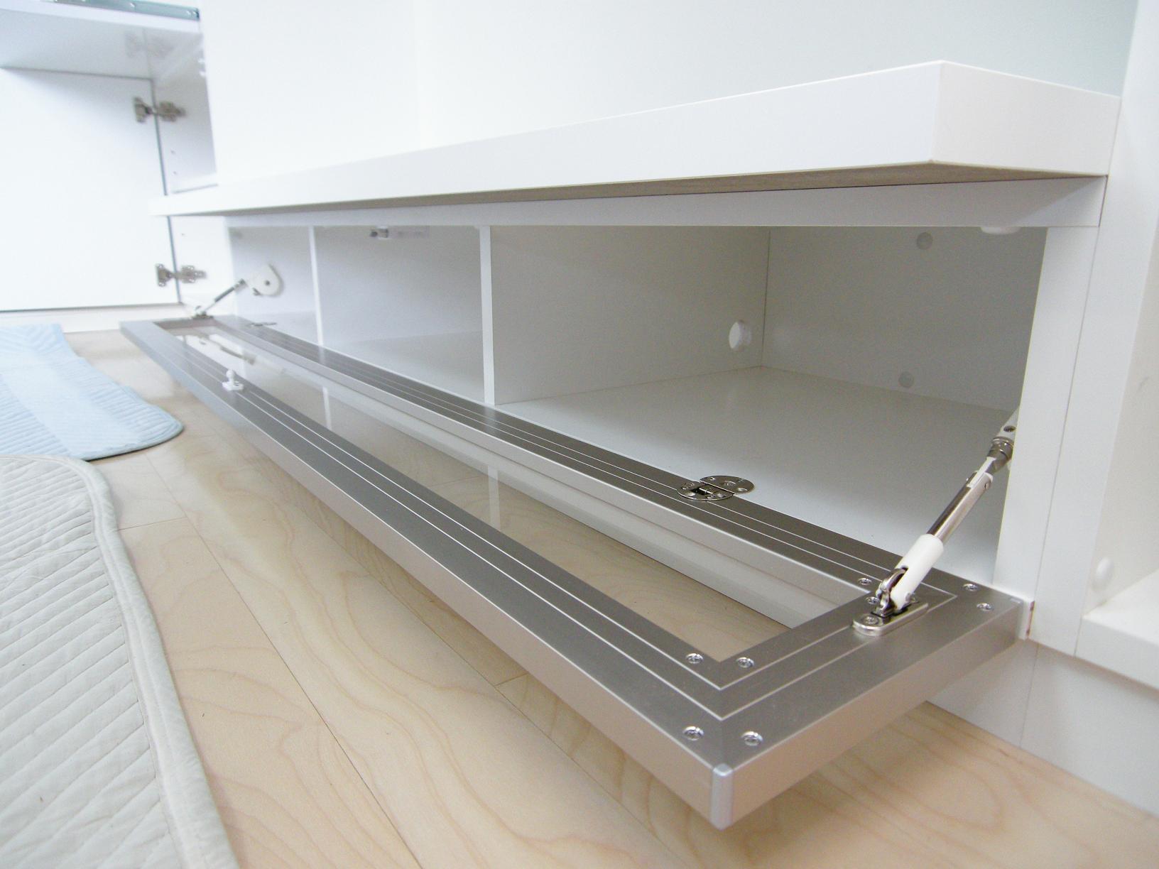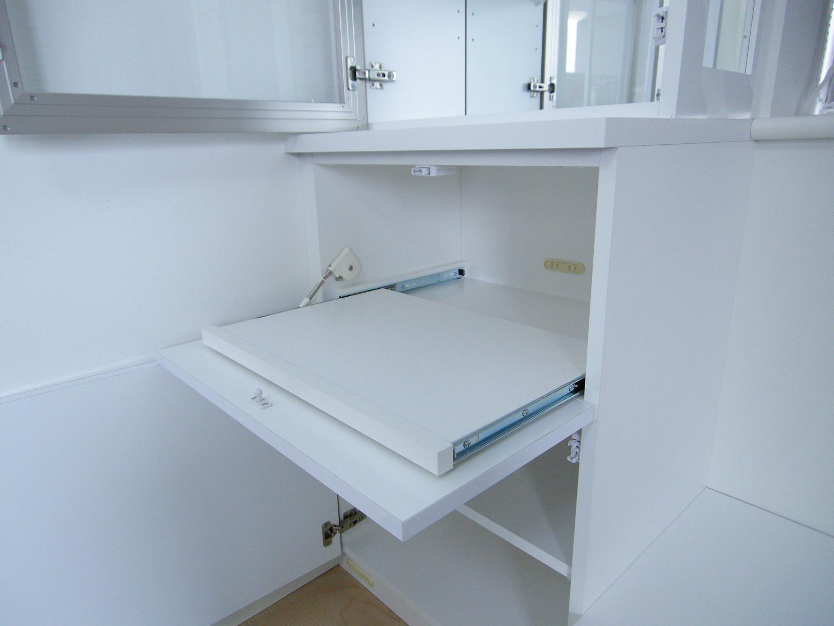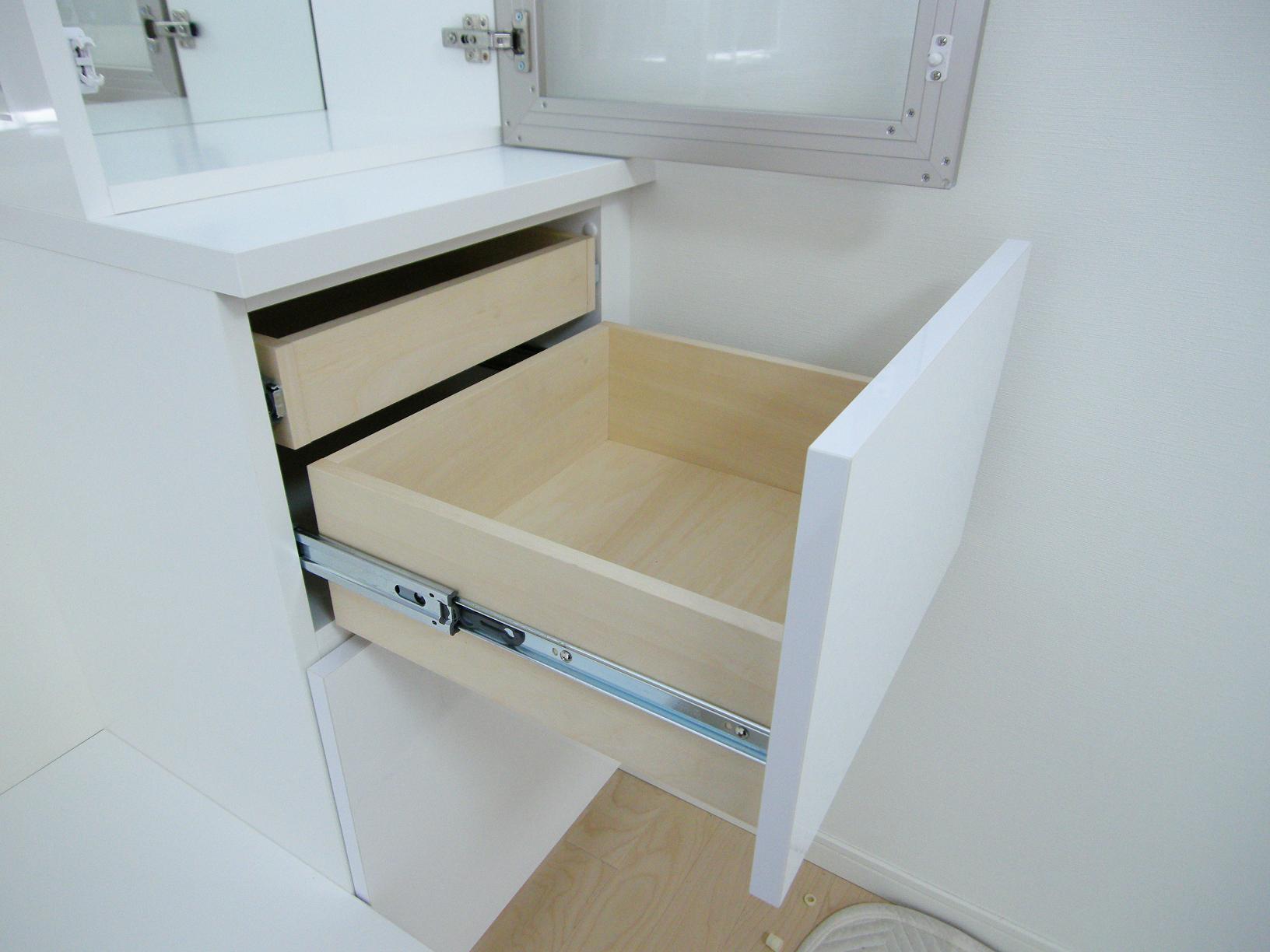 :M3鏡(背板に採用)・プッシュオープン式引き出し・AC新設