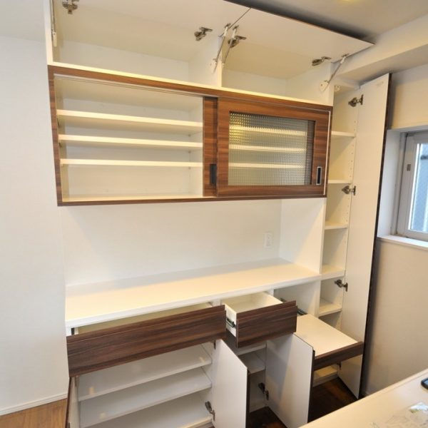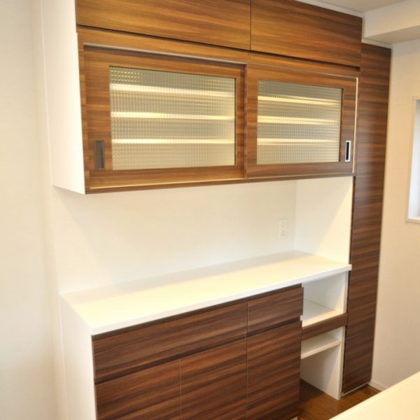 川崎市にお住まいのO様よりカップボード製作(造作キッチン壁面収納)をオーダー頂きました。