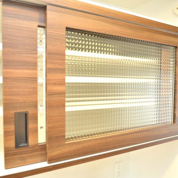 リストラス硝子を組んだ四方枠扉は目隠し効果とともに、アンティーク感もお楽しみいただけます。