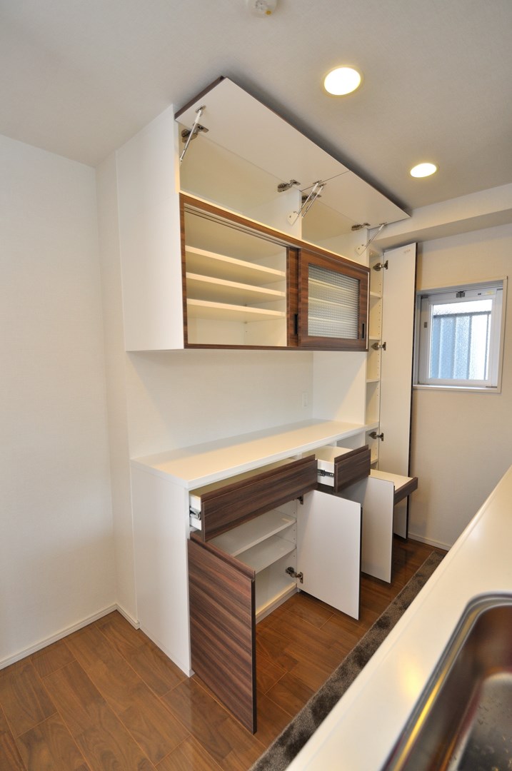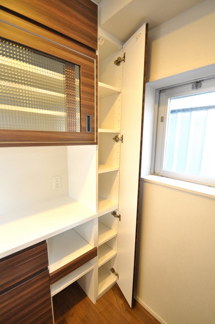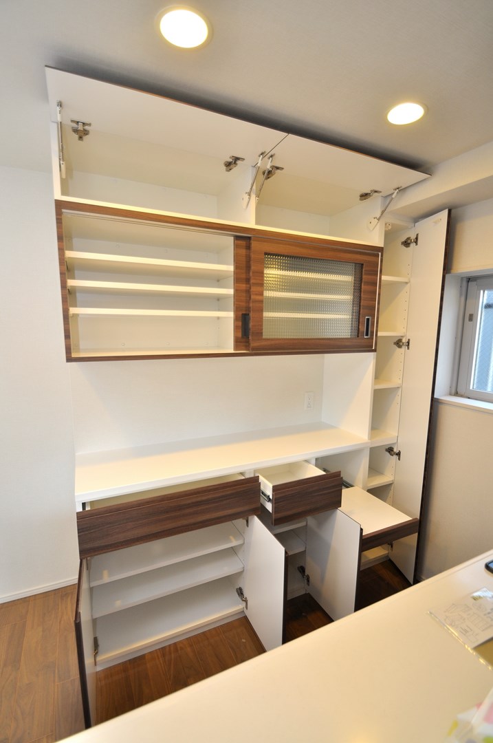 川崎市にお住まいのO様よりカップボード製作(造作キッチン壁面収納)をオーダー頂きました。