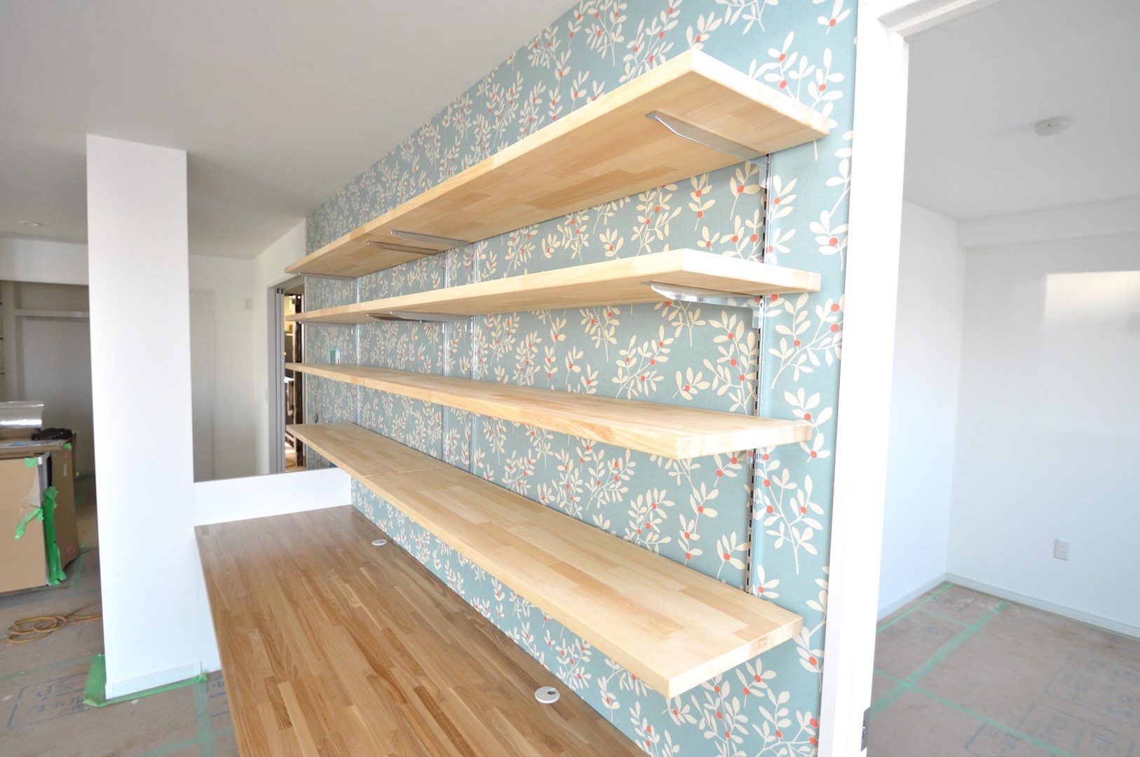 ※棚板には費用対効果を考慮してパインの集成材を採用。