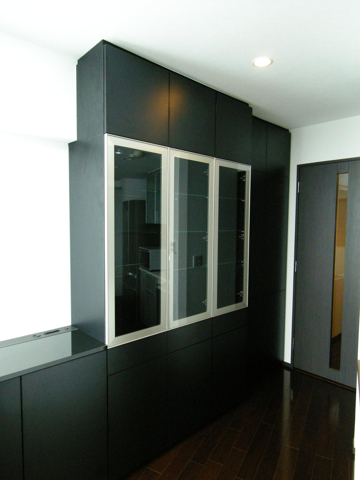 注し色にアルミフレーム扉を採用する事で、シャープさの協調と圧迫感の緩和が見込めます。