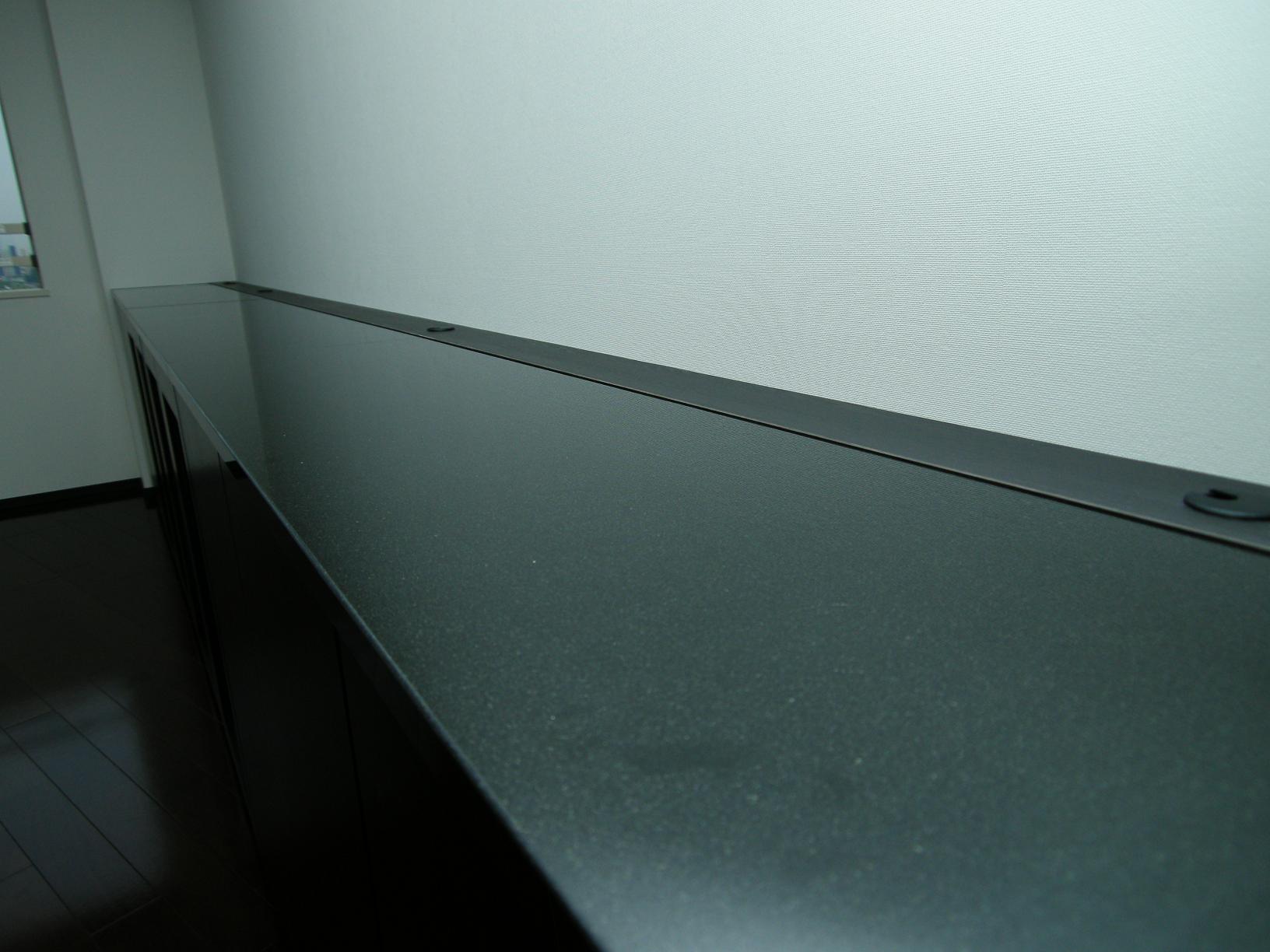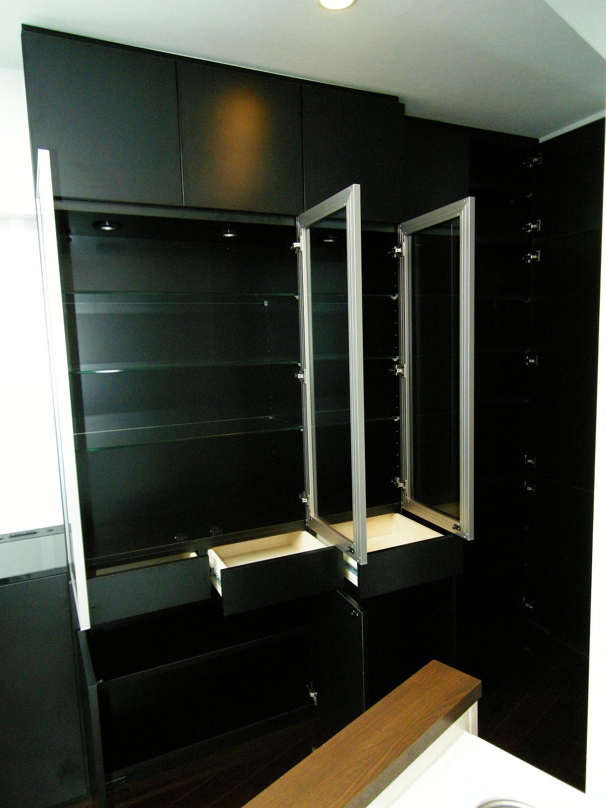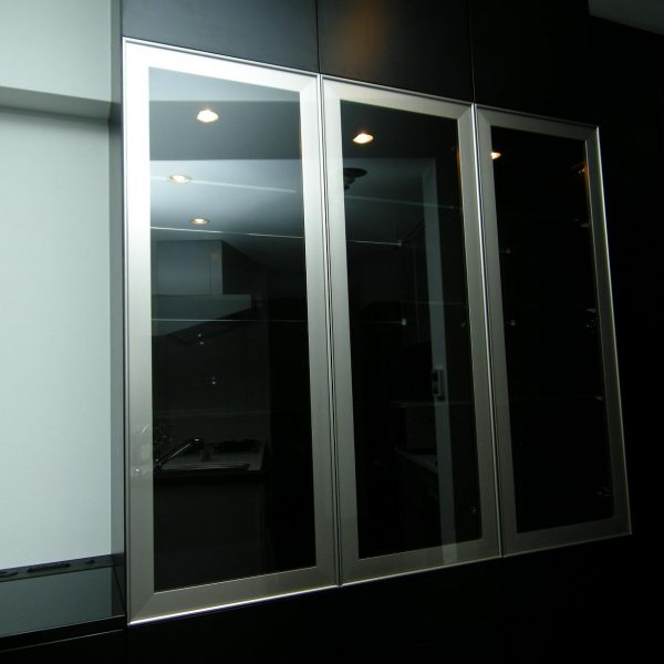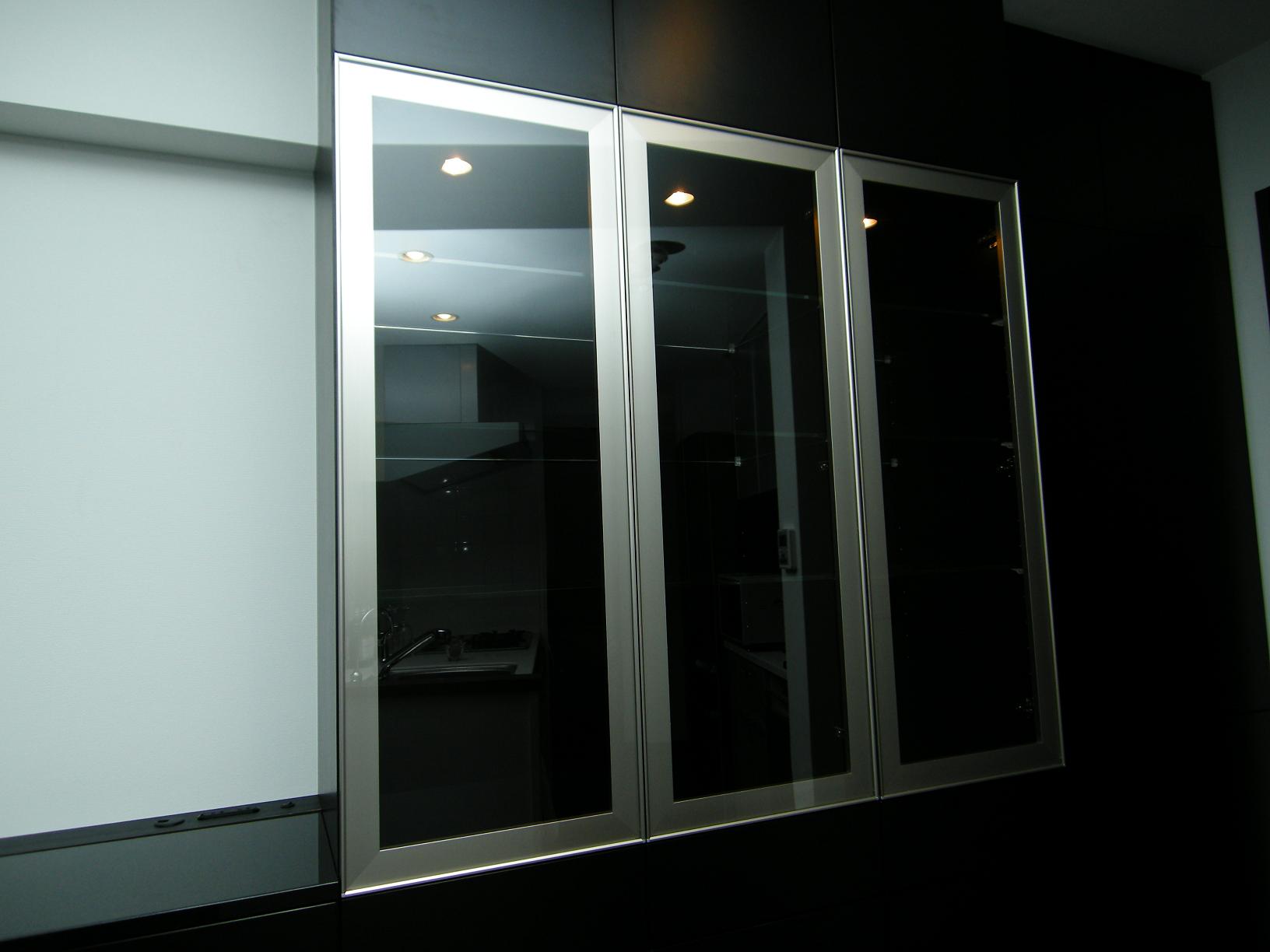 :天然黒御影石天板・HSI社(小林軽金属工業)製FL4強化硝子アルミフレーム扉