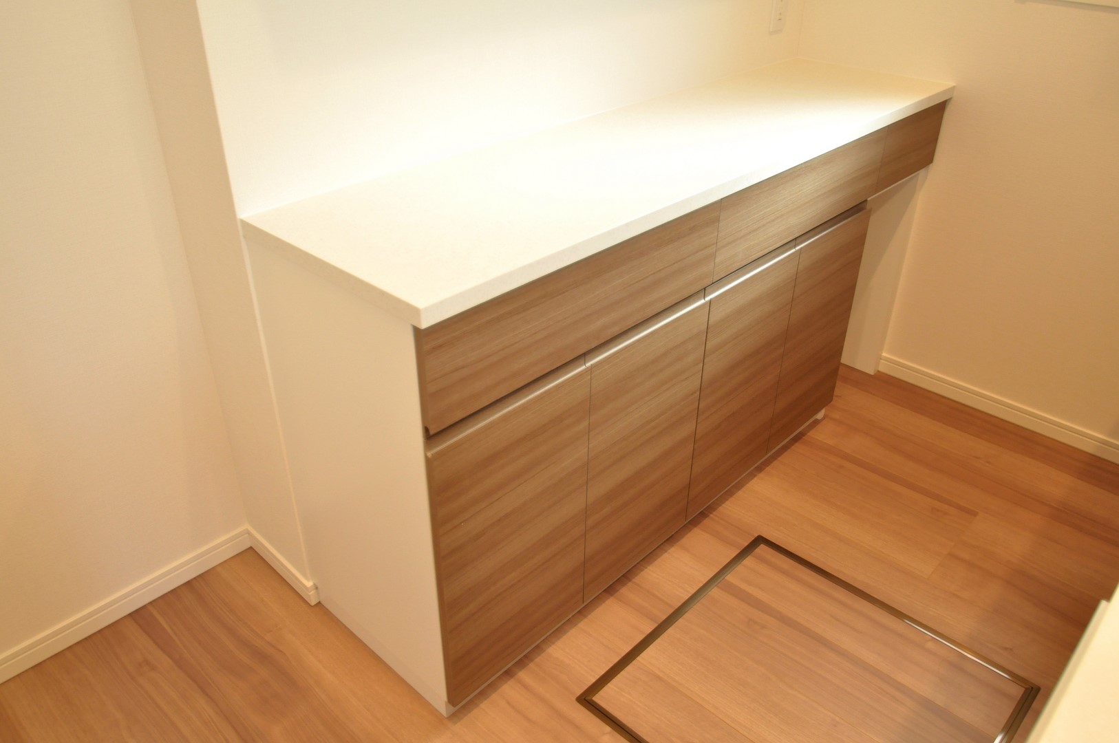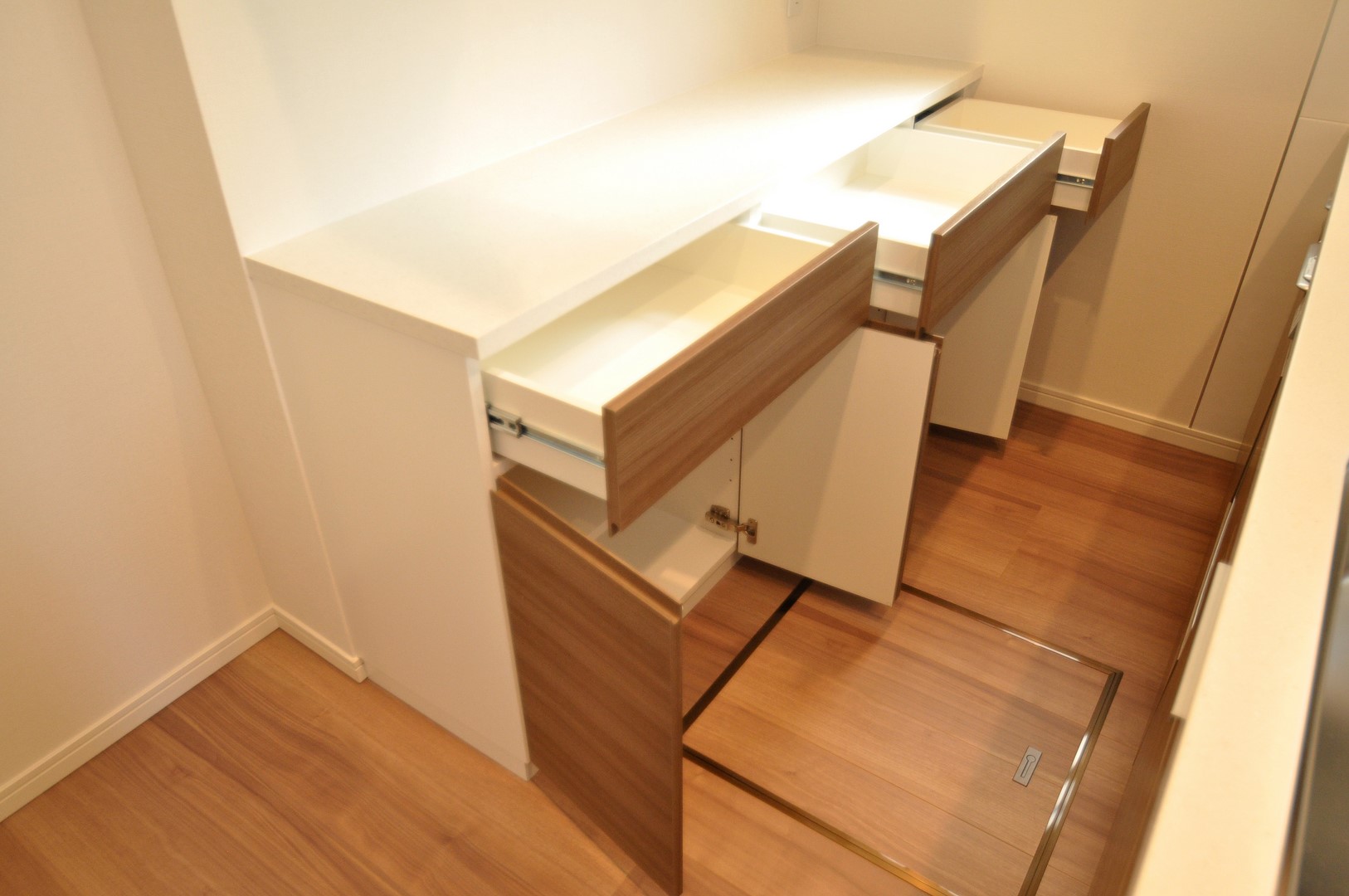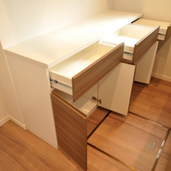カウンター収納部分は抽斗×3杯と観音扉収納が2杯。