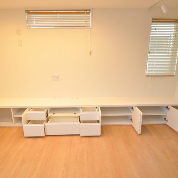 今案件の特徴は、テレビボードとベンチ収納を融合させたところといえるでしょう。