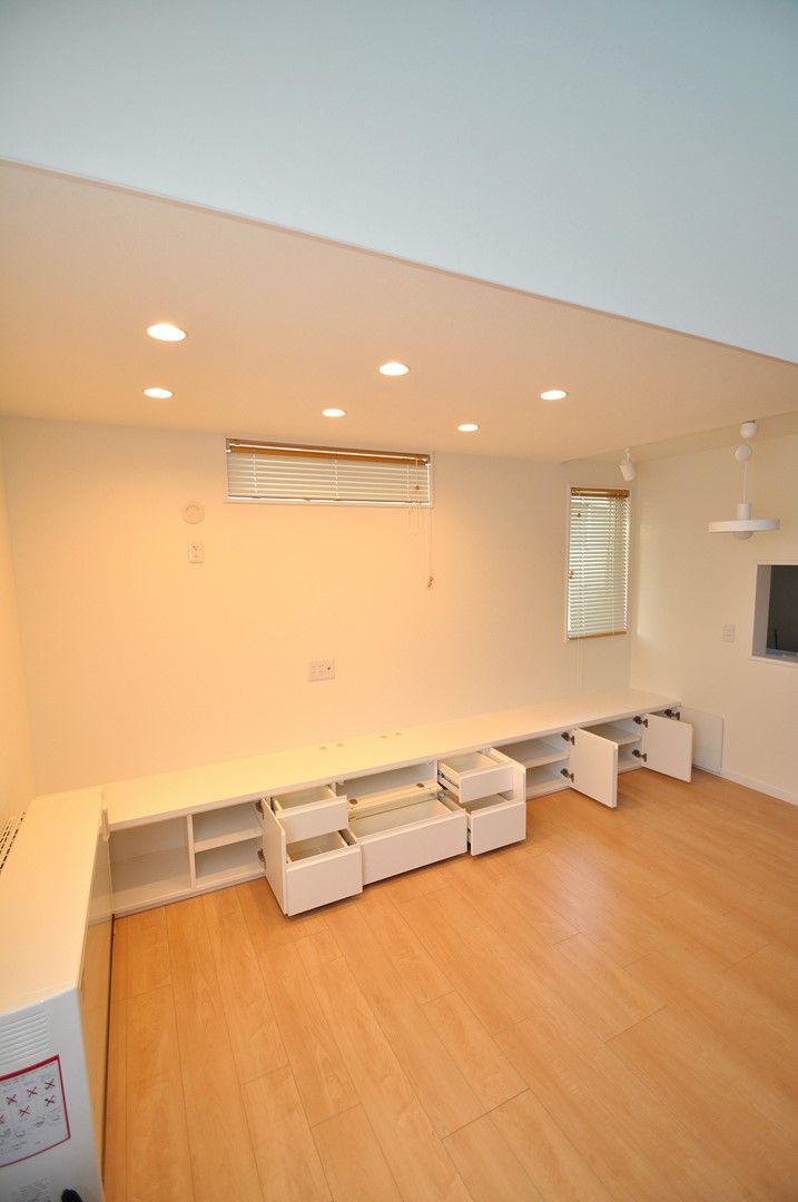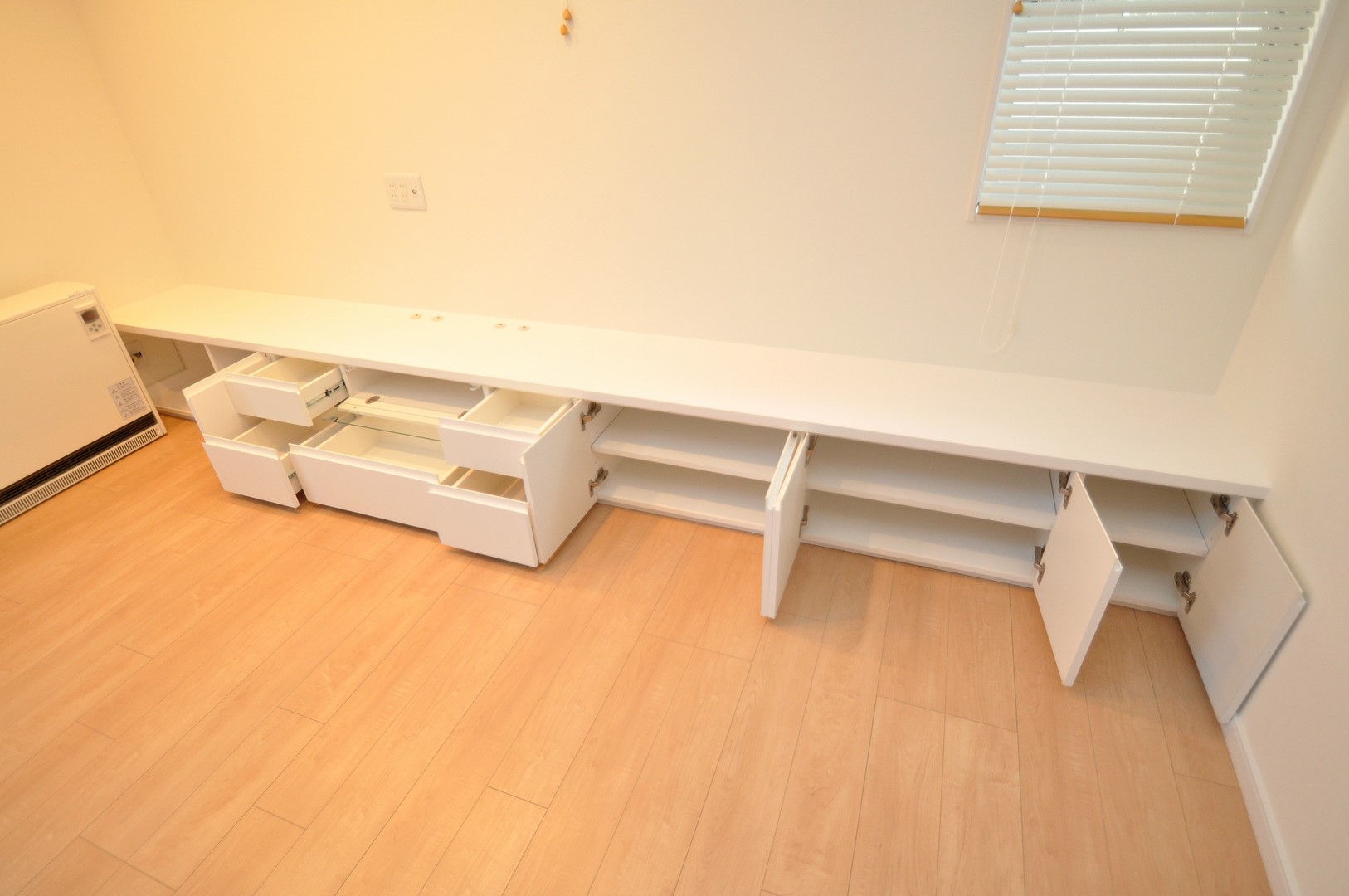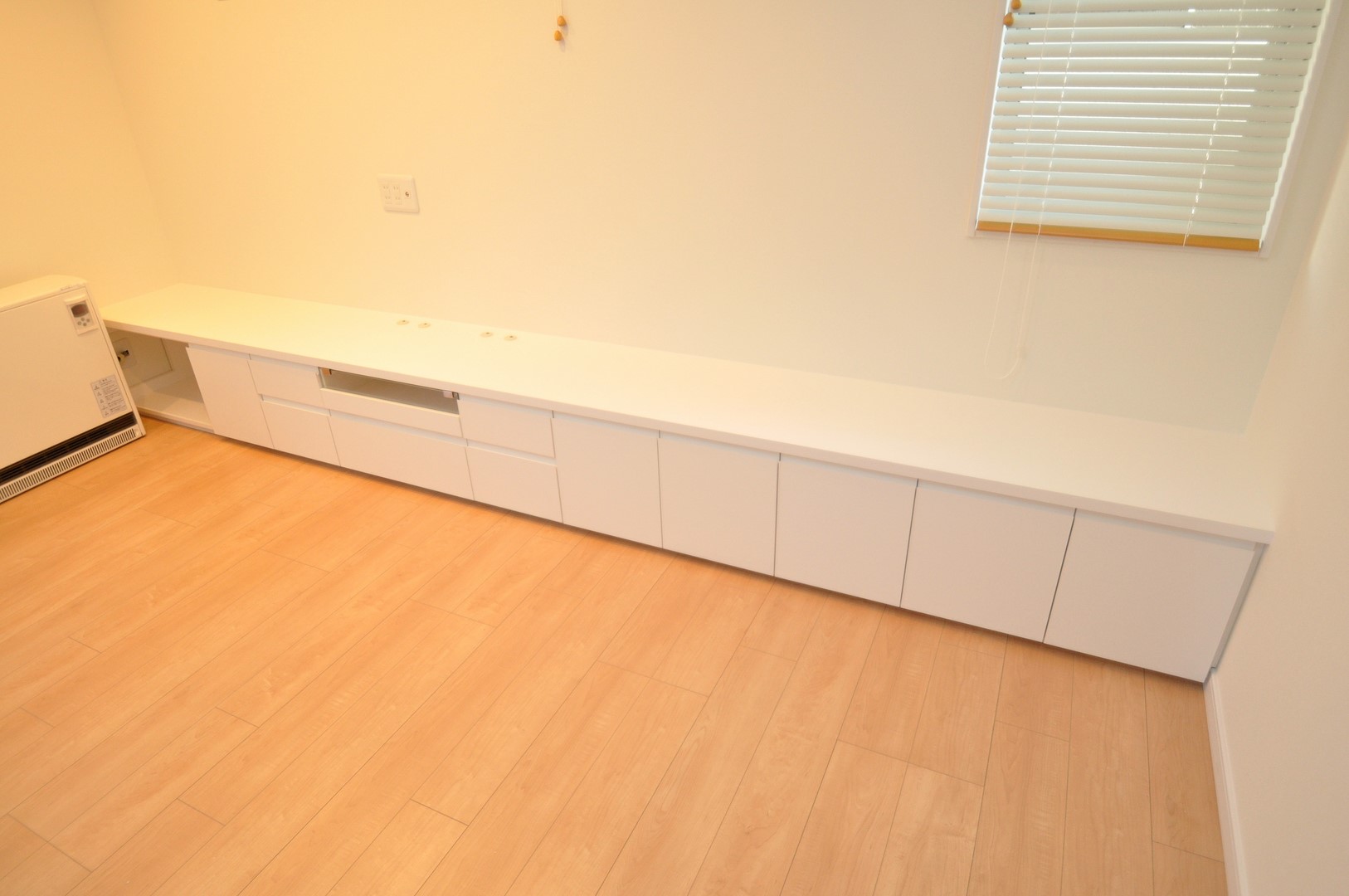 今案件の特徴は、テレビボードとベンチ収納を融合させたところといえるでしょう。