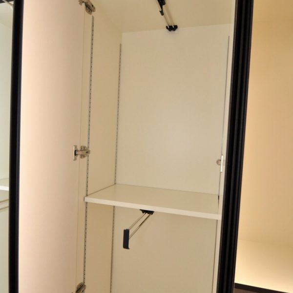 今回は居住スペースをできるだけ確保するために、伸縮スライドハンガーを採用した収納形状となります。