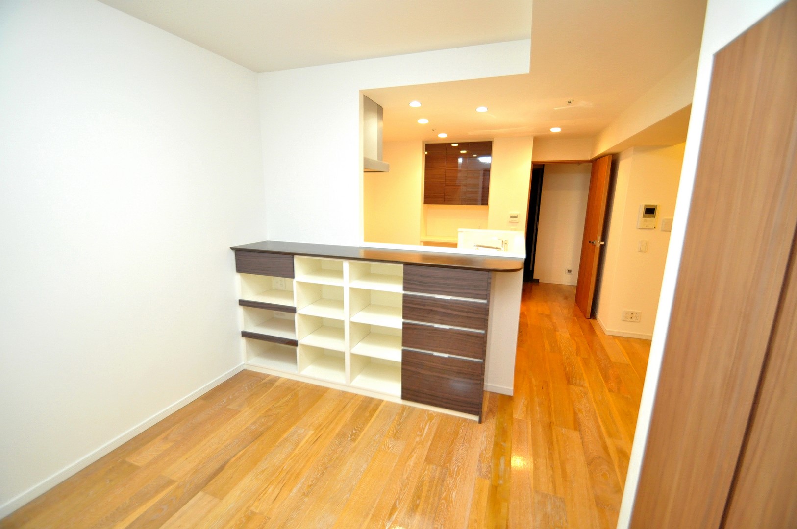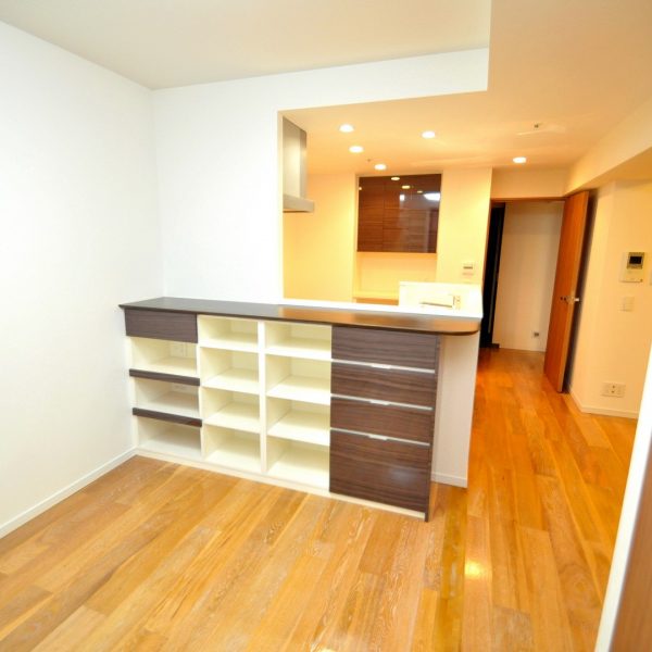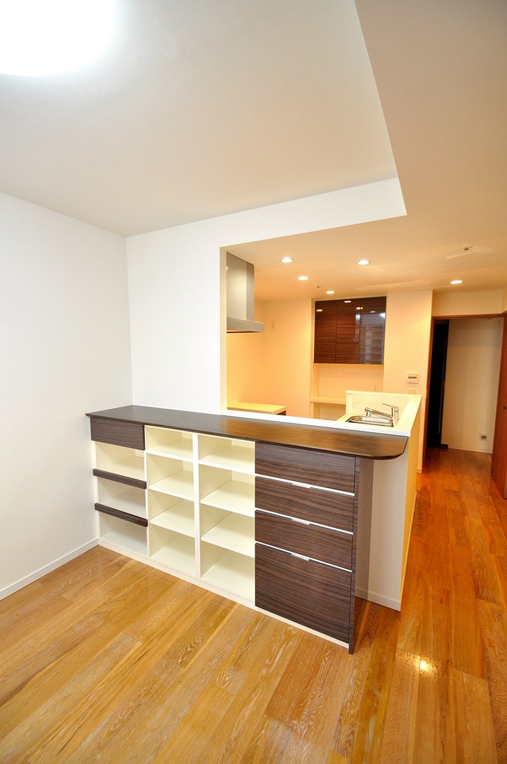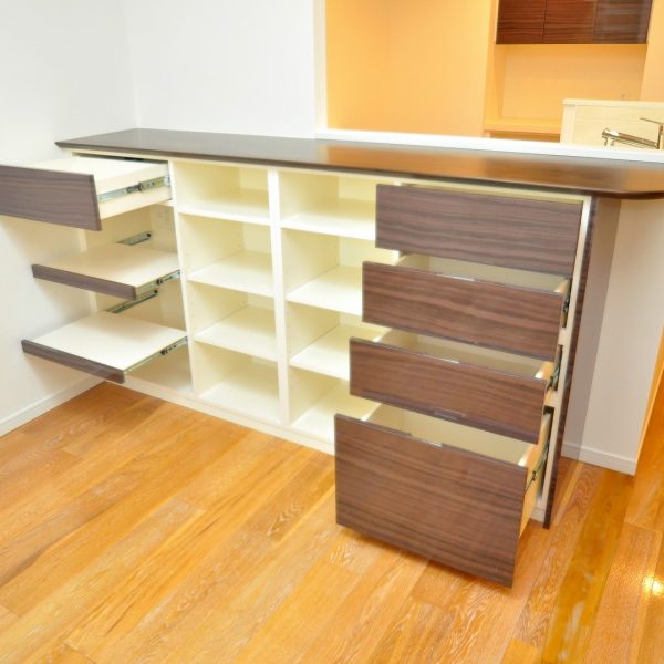 分譲マンションキッチン内における造作壁面収納 ダイニングカウンター製作 オーダー家具 製作事例