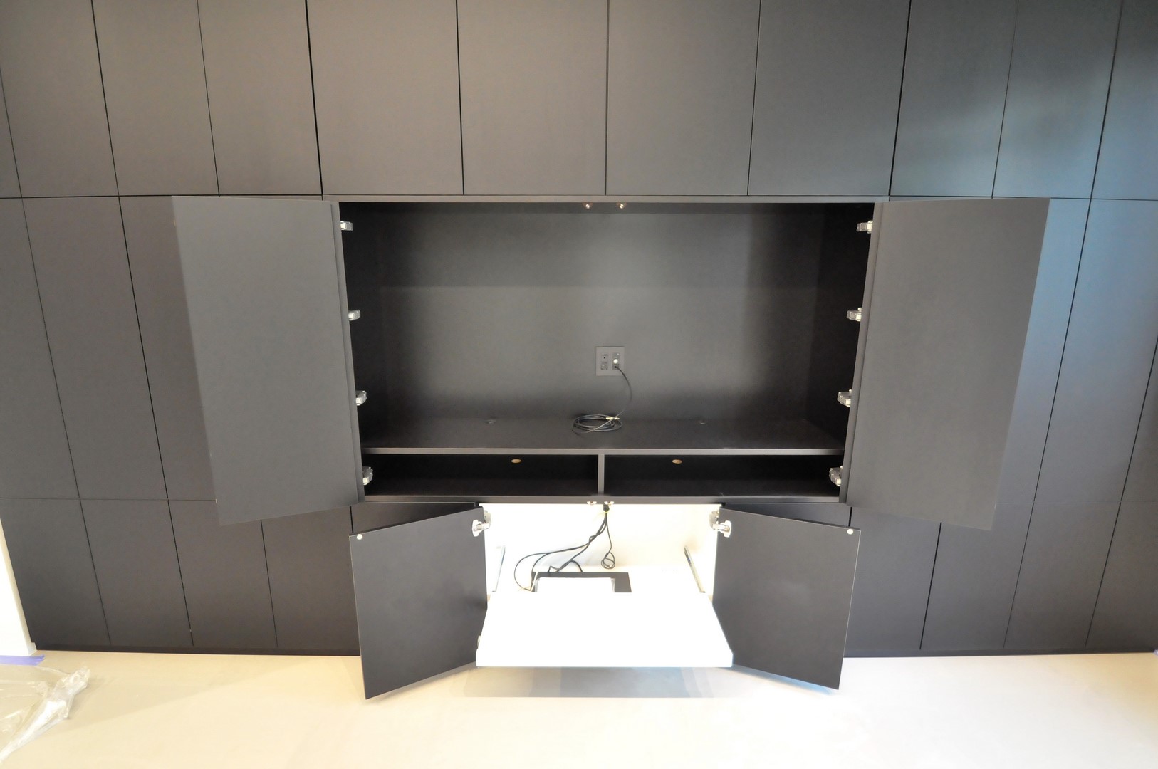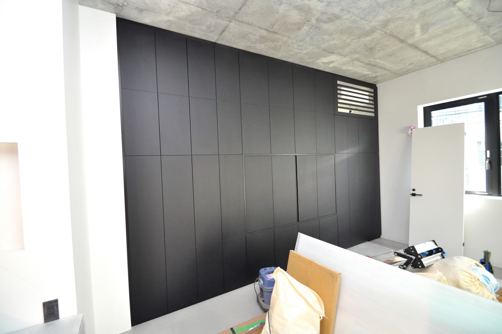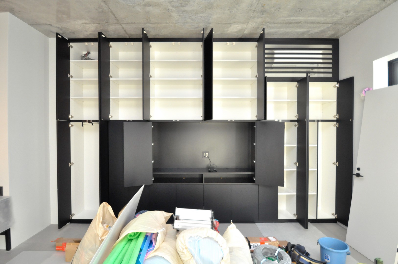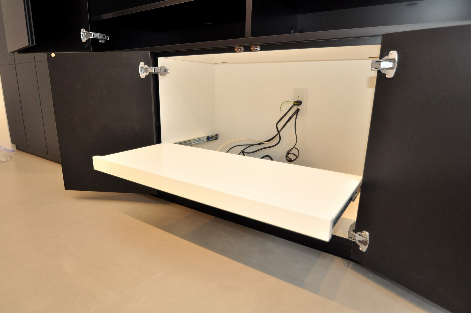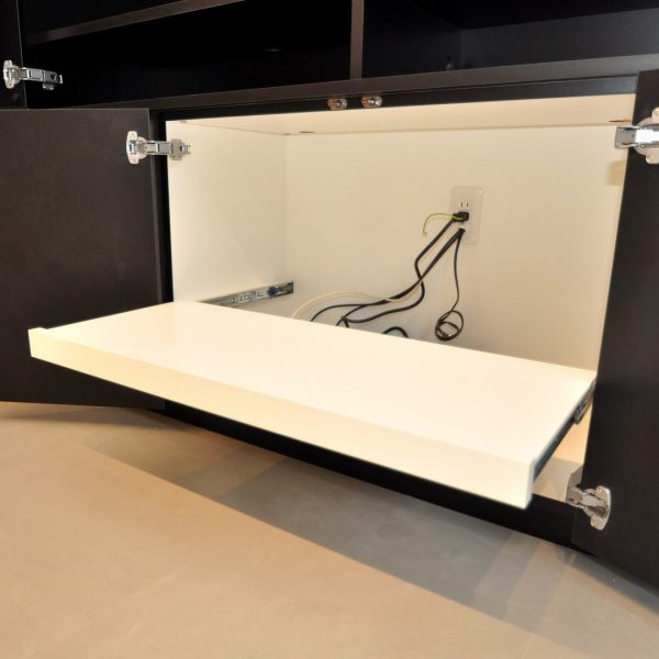 マットブラックで統一された正面意匠の裏には、ご希望の収納内容が細かく設定されております。