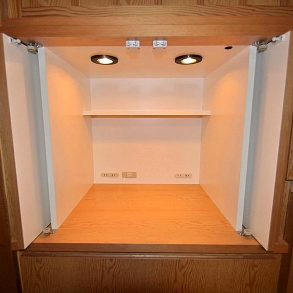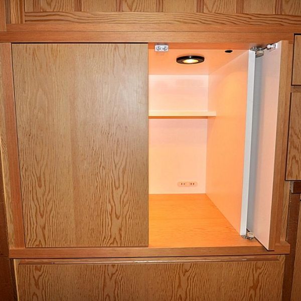 こちらの収納内部はコストを考慮してポリエステル化粧合板を採用。