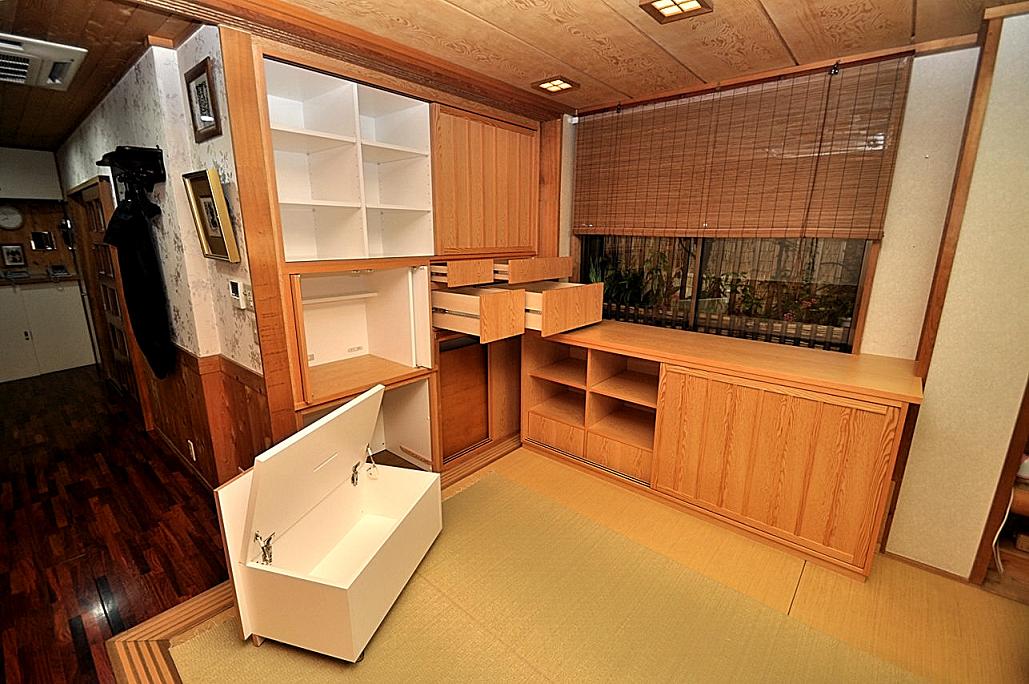 和室・押入れ内における壁面収納 製作事例。