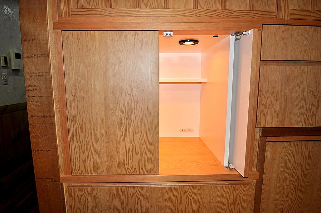 こちらの収納内部はコストを考慮してポリエステル化粧合板を採用。