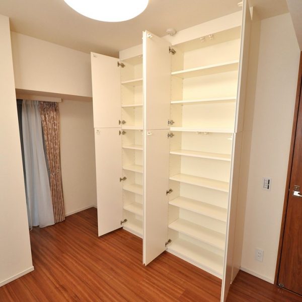 収納内容を考慮したうえ、室内照明スイッチの手前まで製作いたしました。