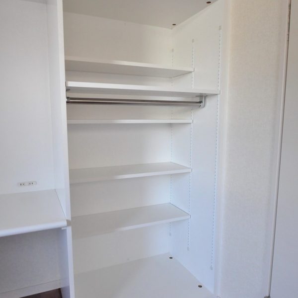 上部天袋部分は、費用対効果を優先して扉も白色ポリエステル化粧合板で製作。