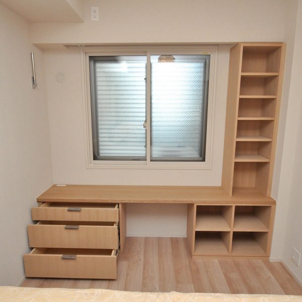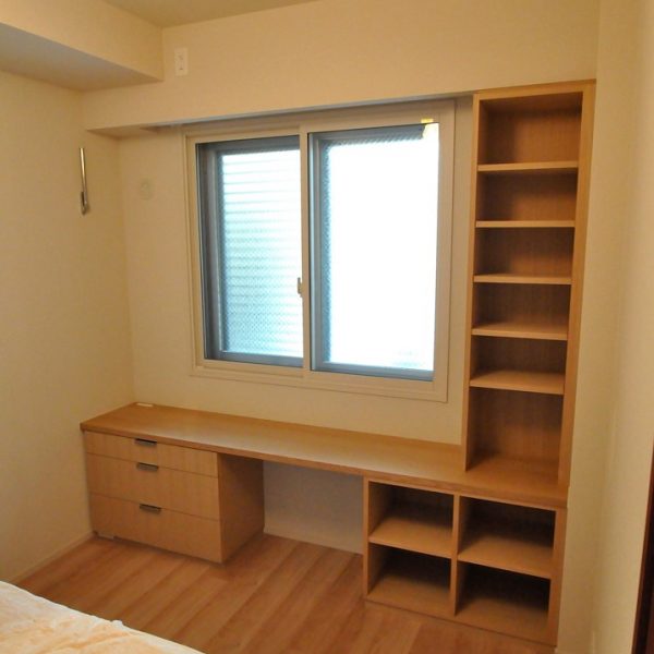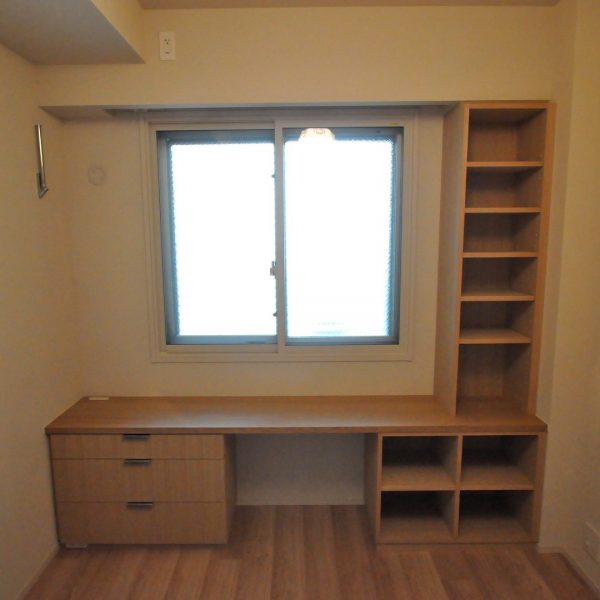 分譲マンション内洋室の壁面収納製作 造作デスク収納 注文家具 製作事例
