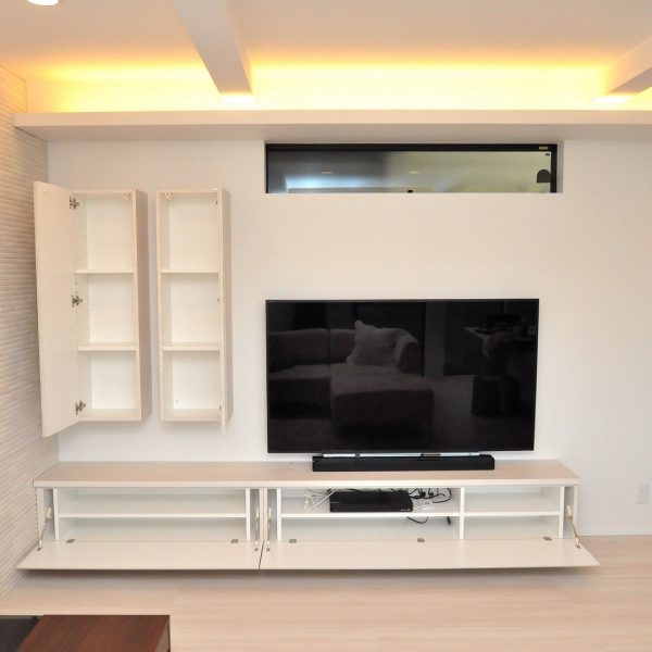 足立区にお住まいのY様より、造作リビング壁面収納(テレビボード/リビングボード製作)をオーダー頂きました。