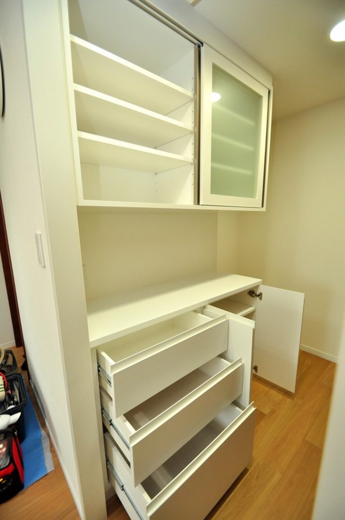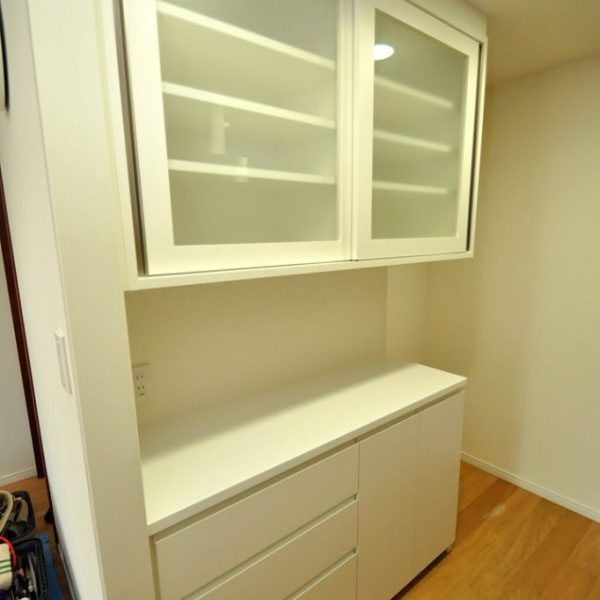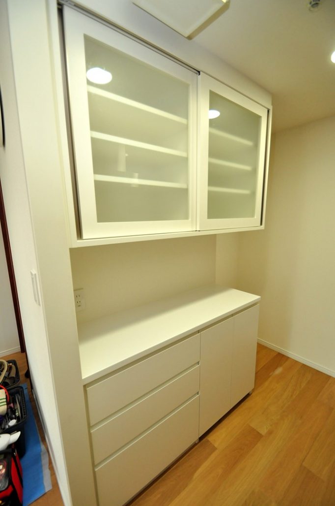 港区にお住まいのI様より、造作カップボード(キッチン壁面収納製作)をオーダー頂きました。