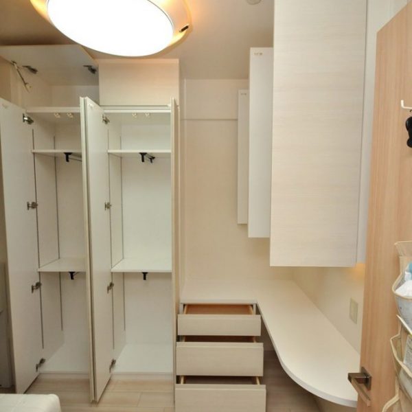 機能金物を組むことで、奥行き寸法を抑えたクローゼットを造り付けることができます。
