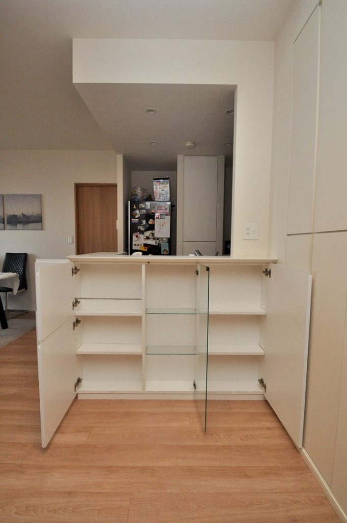 ・分譲マンション内における、ダイニングボード製作/造作カウンター下収納 工事 オーダー家具 施工事例