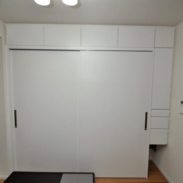 ベッドルームの一面をクローゼットとして施工させていただきました。