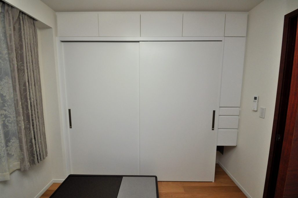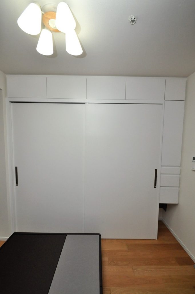 ベッドルームの一面をクローゼットとして施工させていただきました。
