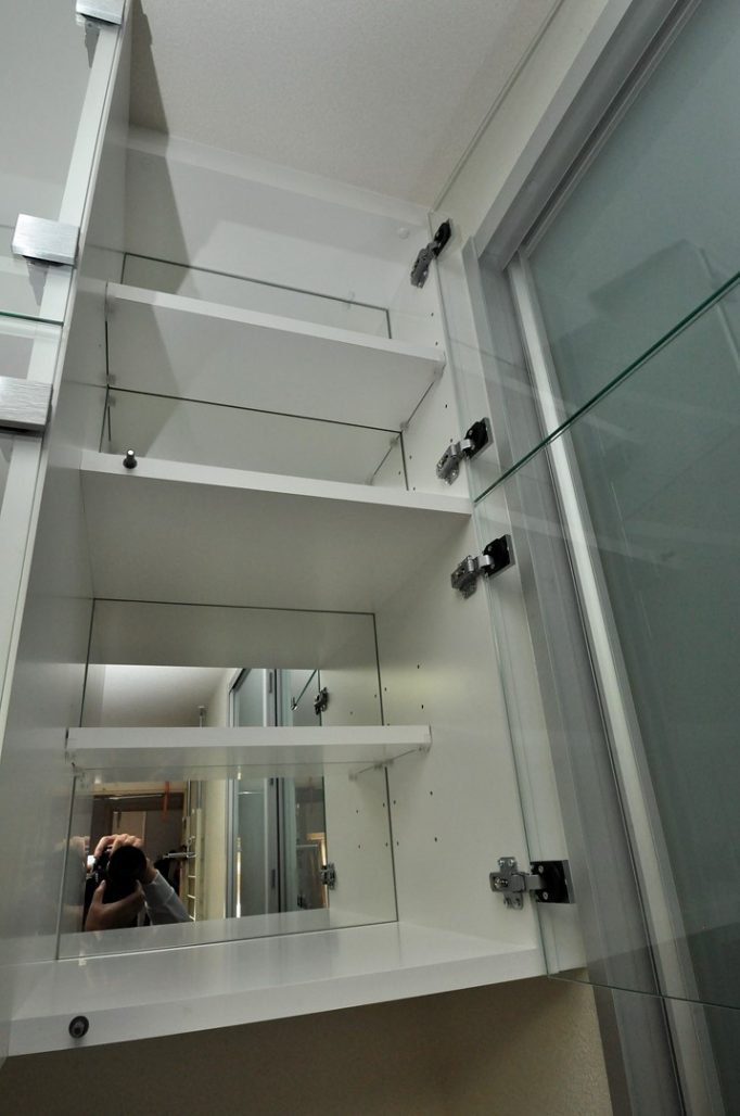 割付・意匠の特徴と言えば、硝子扉と背面ミラーによる見せる収納であるところでしょうか。