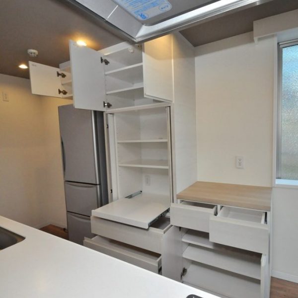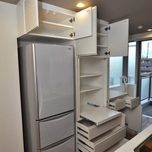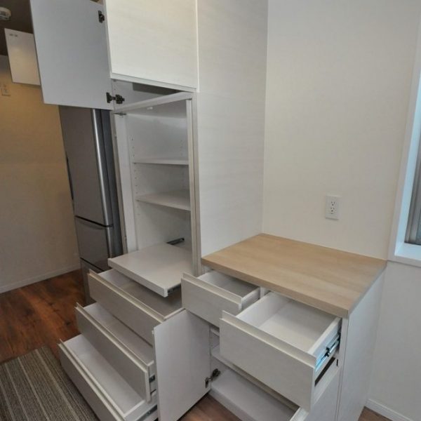 分譲マンション:キッチン内における造作壁面収納/カスタムメイド製作 オーダー家具 製作事例