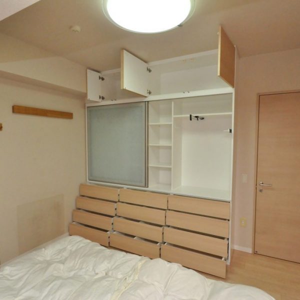 分譲マンション内洋室における造作壁面収納/造作クローゼット オーダー家具 製作事例
