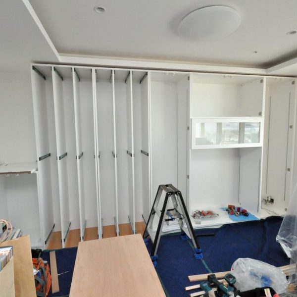 テレビボードを挟んでもう一杯のトール収納を製作致しております。