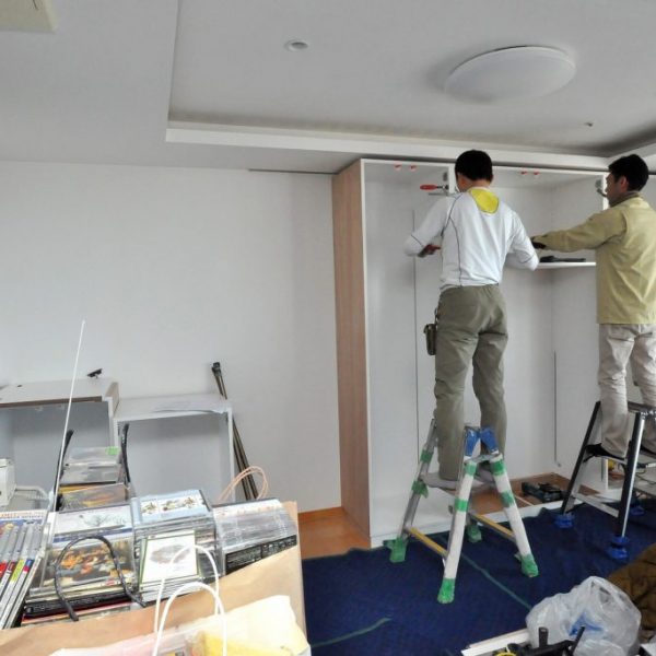 分譲マンション内リビングルーム内における造作壁面収納/リビングボード製作 オーダー家具 製作事例