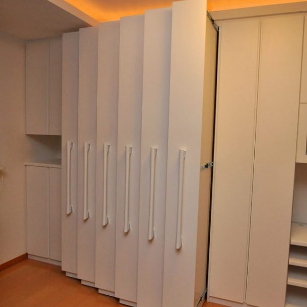 スライドボックスの右側にはトールタイプの開き戸収納。