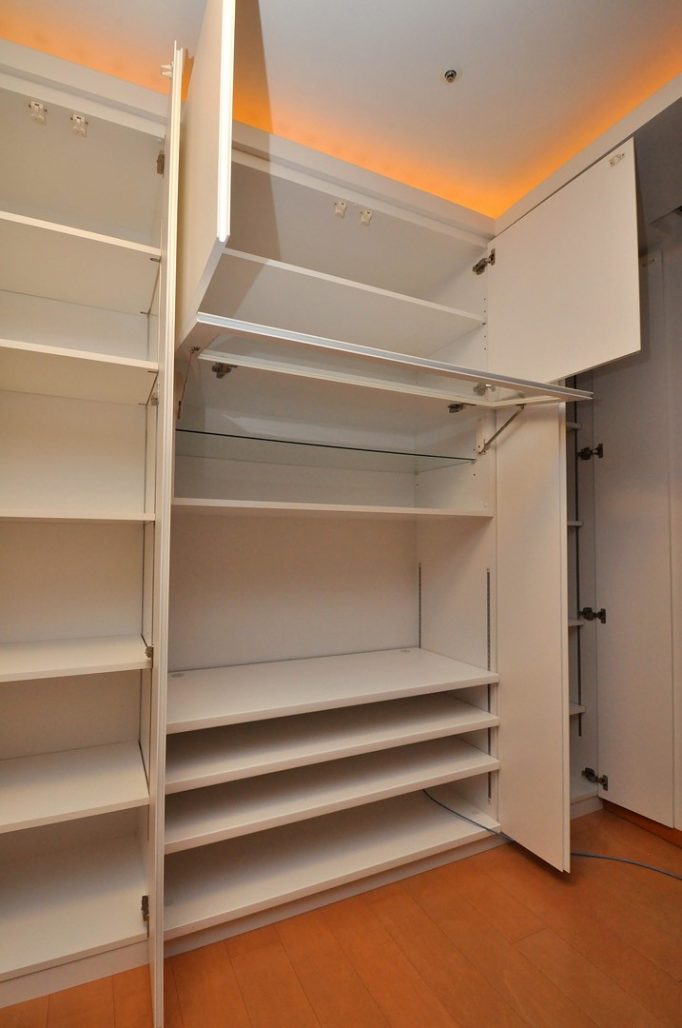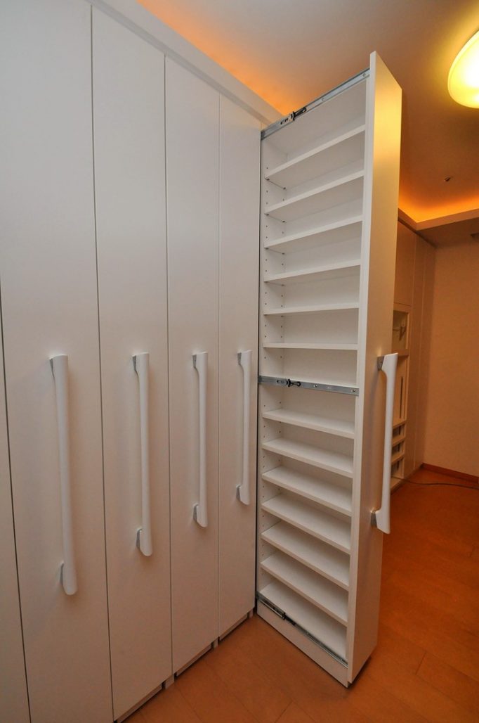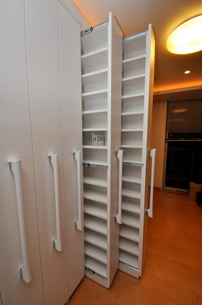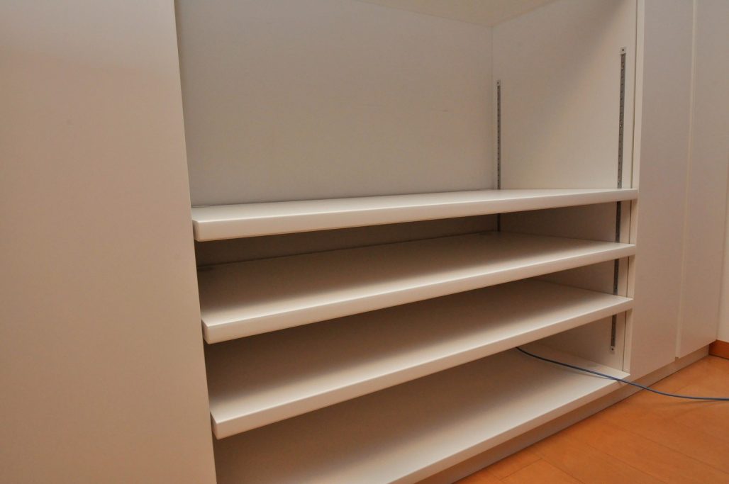 スライドボックスの右側にはトールタイプの開き戸収納。