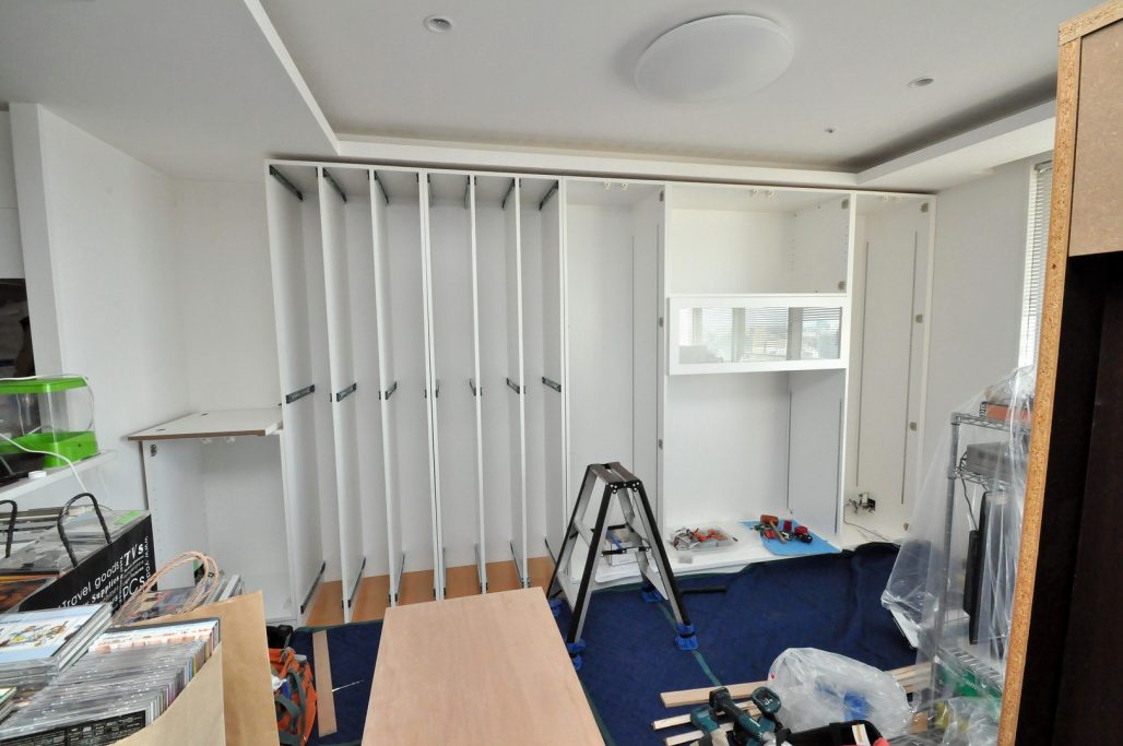 テレビボードを挟んでもう一杯のトール収納を製作致しております。