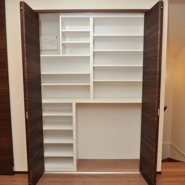 今回の造作内容の特徴と言えば、実装収納内部への追加木工事であるところでしょうか。