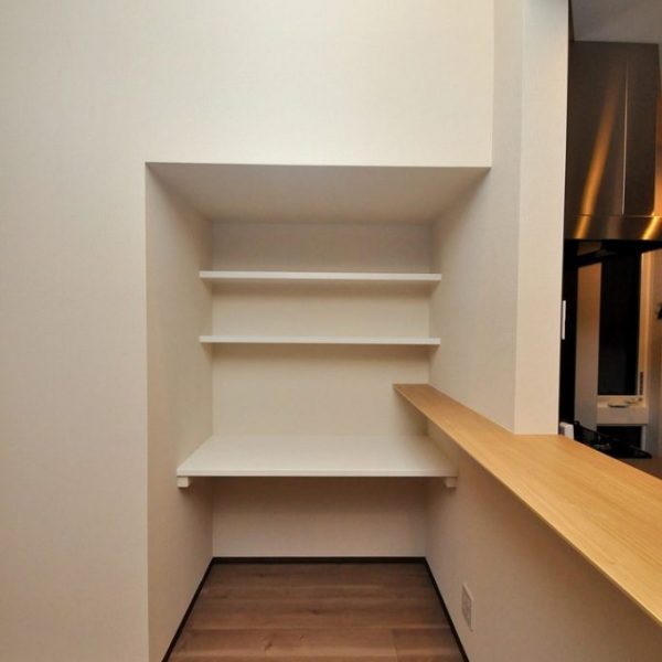 『建築で仕上がっている部分に少し手を加えるだけで、使い勝手の良い壁面収納に生まれ変わります』