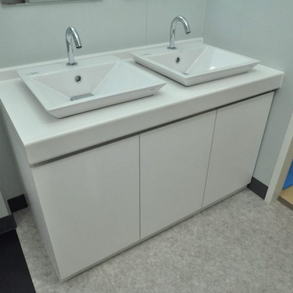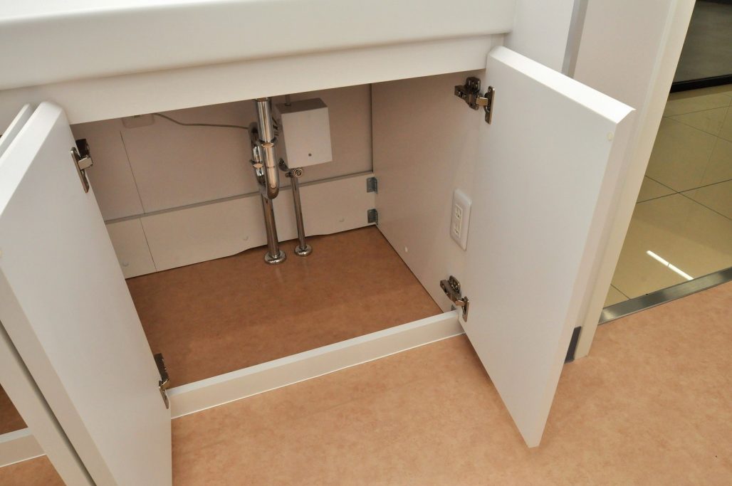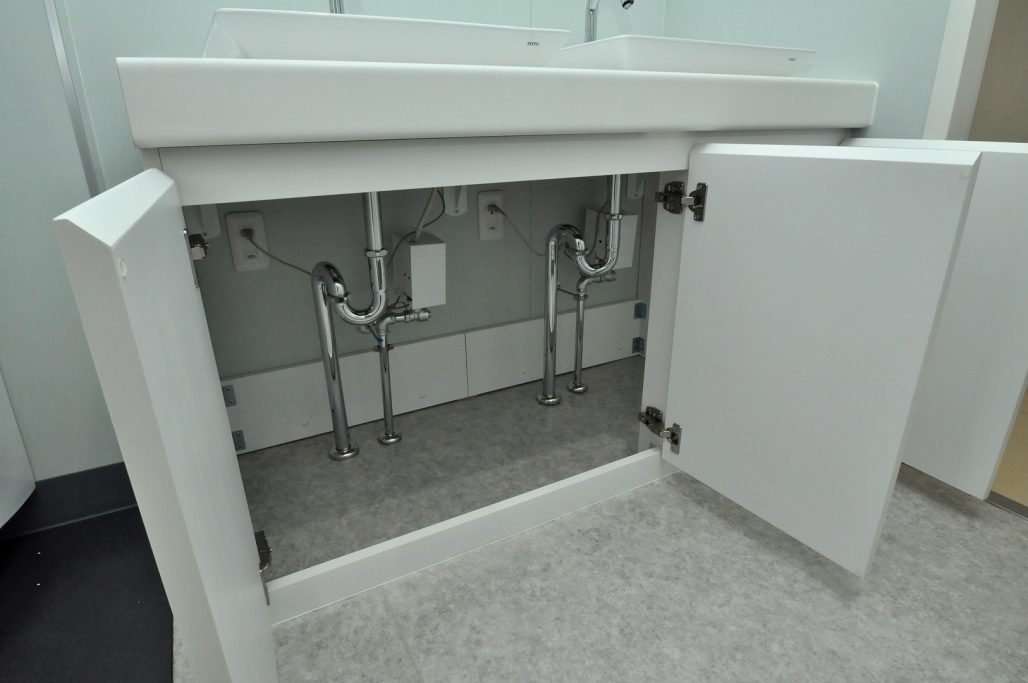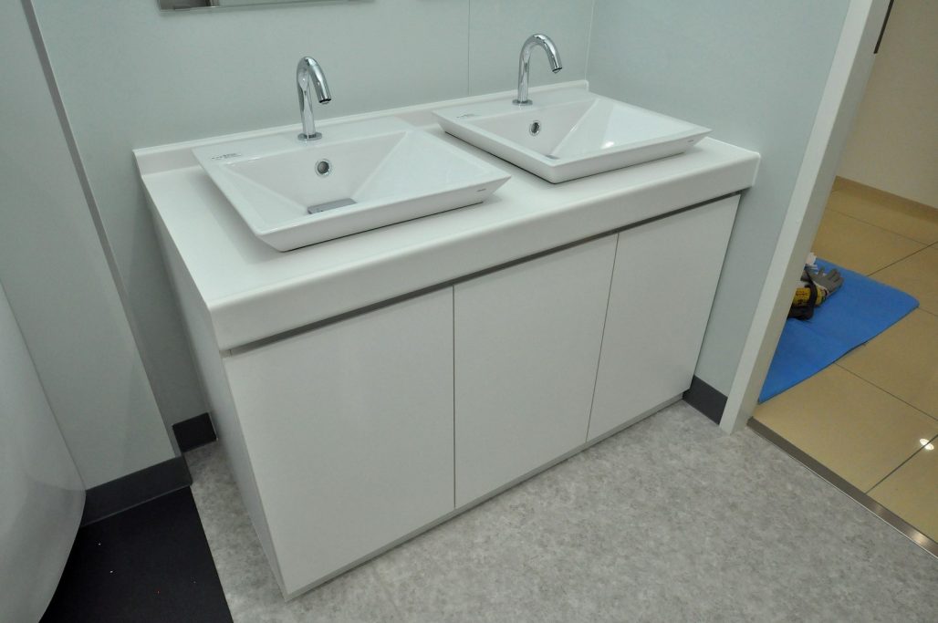 オフィス内における、実装洗面台のカバーアップ工事/オーダー什器 造作家具 製作事例