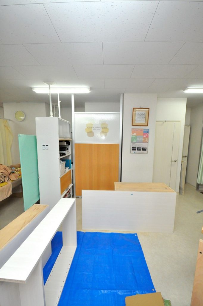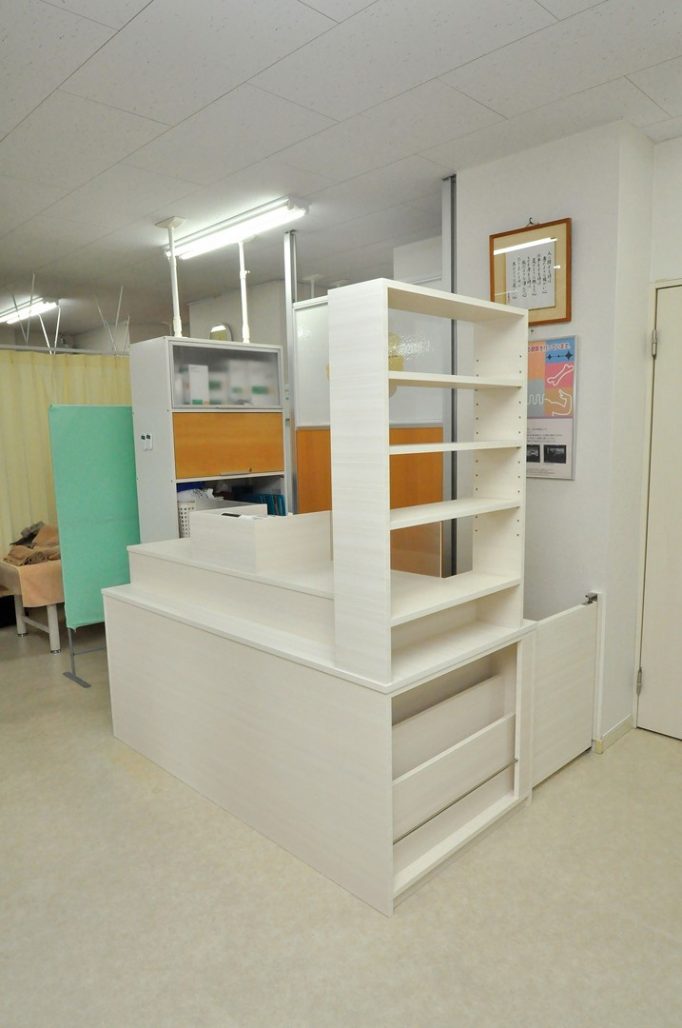 練馬区 整体整骨院内什器工事 受付カウンター什器 オーダーメイド 造作家具