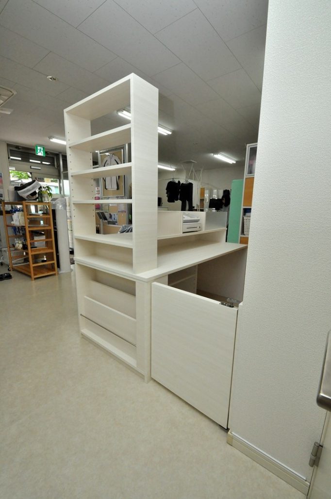 今回ご依頼をいただいた什器の特徴と言えば、スタッフ様の使い勝手にこだわったところでしょうか。
