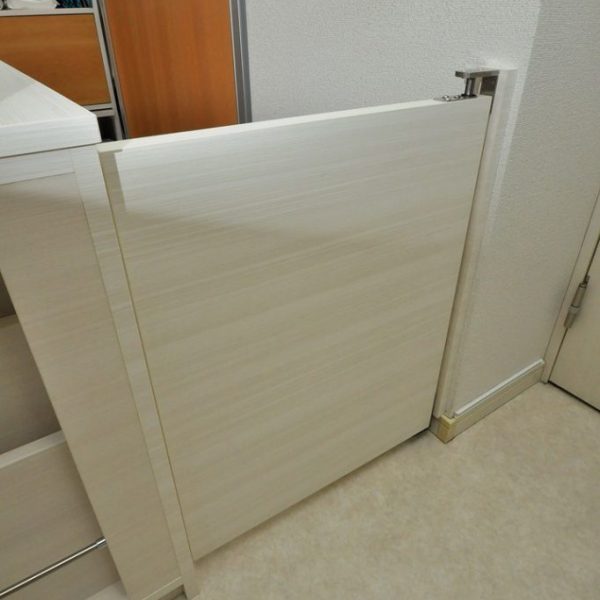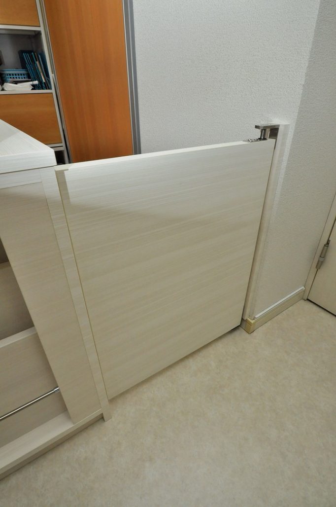 採用材はアイカ工業の白色木目系化粧板。