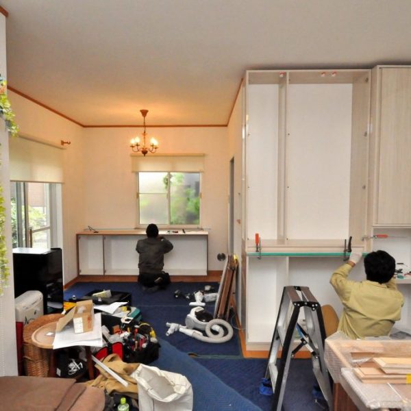 分譲住宅内 LDKにおける造作壁面収納/什器工事 オーダー家具 製作事例