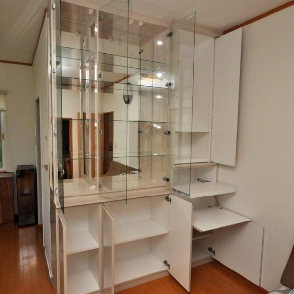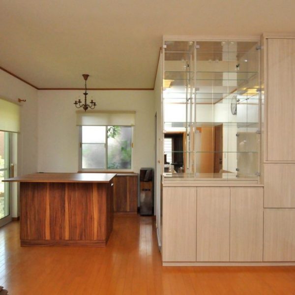今回のご注文は、造作カウンターキャビネット/造作アイランドカウンター/キュリオケース色の強いリビングボードを含めた計3点。