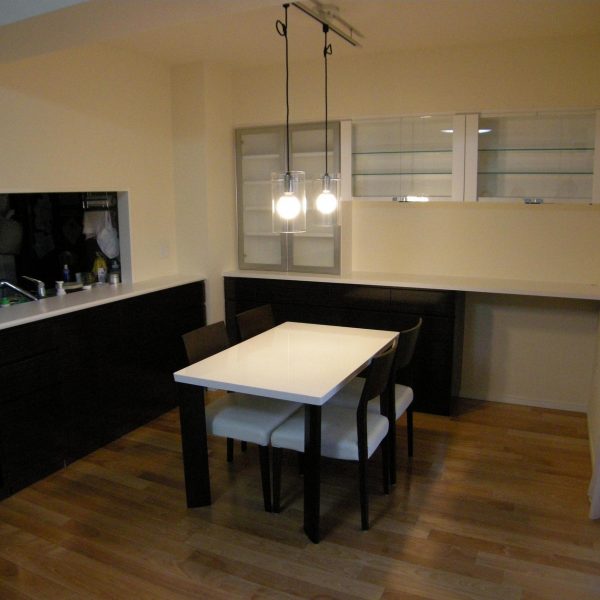 リビングダイニングルーム全体の統一感を考慮した製作事例。