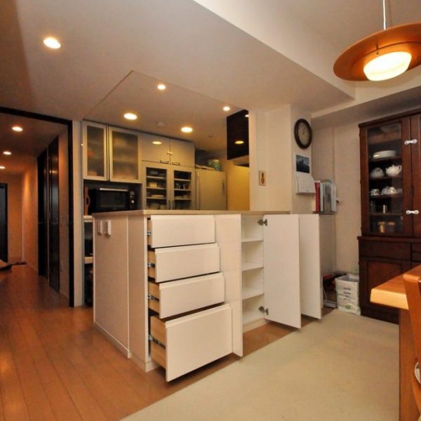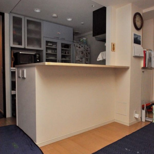 ・分譲マンション内における、ダイニングボード製作/造作カウンター下収納 工事 オーダー家具 施工事例